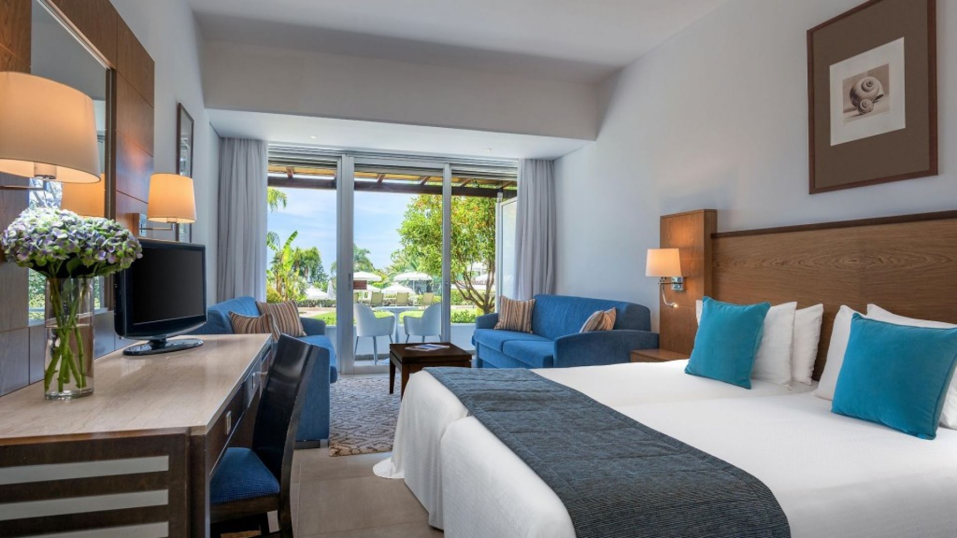 Курортът е разположен на пясъчен плаж в Лимасол. Комфортните стаи разполагат с балкон или тераса, телевизор и самостоятелна баня с тоалетни принадлежности. Хотелът разполага с ресторанти, предлагащи национална и международна кухня. Разполага с открит плувен басейн, СПА център, джакузи, сауна, хамам, масажи, козметични процедури, фитнес зала и безплатен Wi-Fi. Гостите могат да се насладят и на музикални изпълнения на живо. Гостите могат също да играят билярд, тенис на маса и тенис на трева на осветения корт.