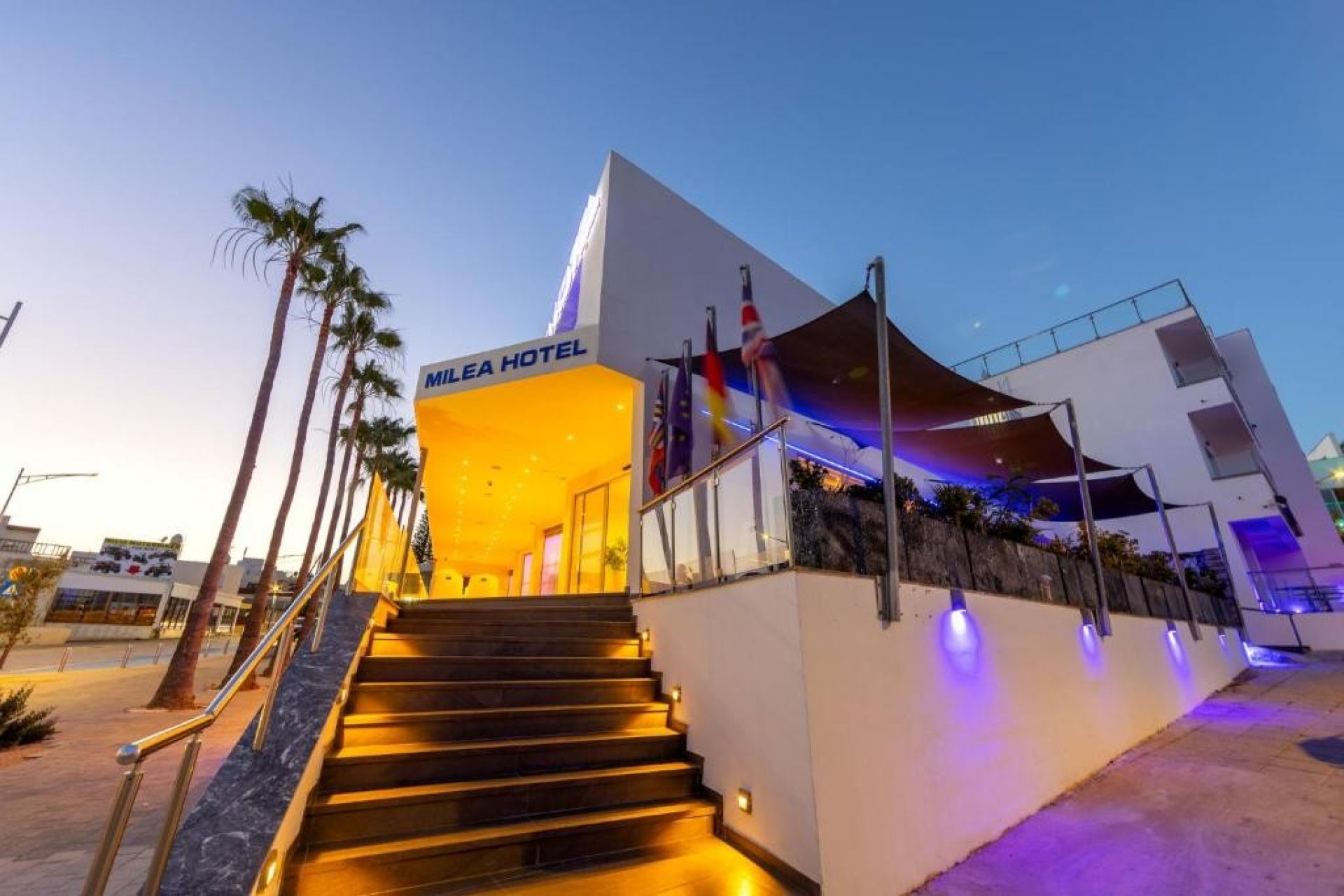Хотел Milea се намира в сърцето на Агия Напа, само на 150 метра от перфектния пясъчен плаж Лиманаки. В непосредствена близост има избрани магазини, ресторанти и барове, а основните дейности в оживения център на града са само на 5-10 минути пеша. Хотел Milea предлага сезонен открит плувен басейн, бар и климатизирани помещения за настаняване с вътрешен двор и безплатен WiFi. Всички помещения за настаняване включват кът за сядане с диван, сешоар, кабелна телевизия, сейф и душ. Повечето помещения за настаняване имат балкон с морски изглед. На разположение на гостите в апартхотела има тераса за слънчеви бани.