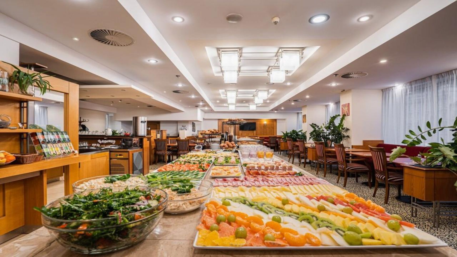 - Закуската е на богат бюфет, включваща пресни плодове, месни и млечни продукти, сладкиши, яйца, зърнени и горещи напитки ;