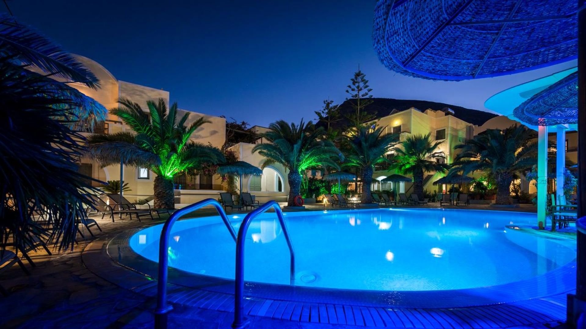 Закуска. Свободно време за плаж или туристическа програма по желание: Екскурзия с пиратски кораб до калдерата на Санторини (около 6 часа) – Неа камени, където се намира все още действащият кратер „Крал Георги I” - тук се открива невероятна 360-градусова панорама към всички острови, част от комплекса Санторини ; Палеа камени със своите термални извори, подходящи за плуване ; о-в Тирасия - западната част на комплекса, където се намира природнооформеното пристанище „Корфос“, изпълнено с таверни, предлагащи традиционните за Санторини ястия. Възможност за плаж или посещение на столицата Манолас, позната с традиционната си архитектура и красивите гледки към калдерата