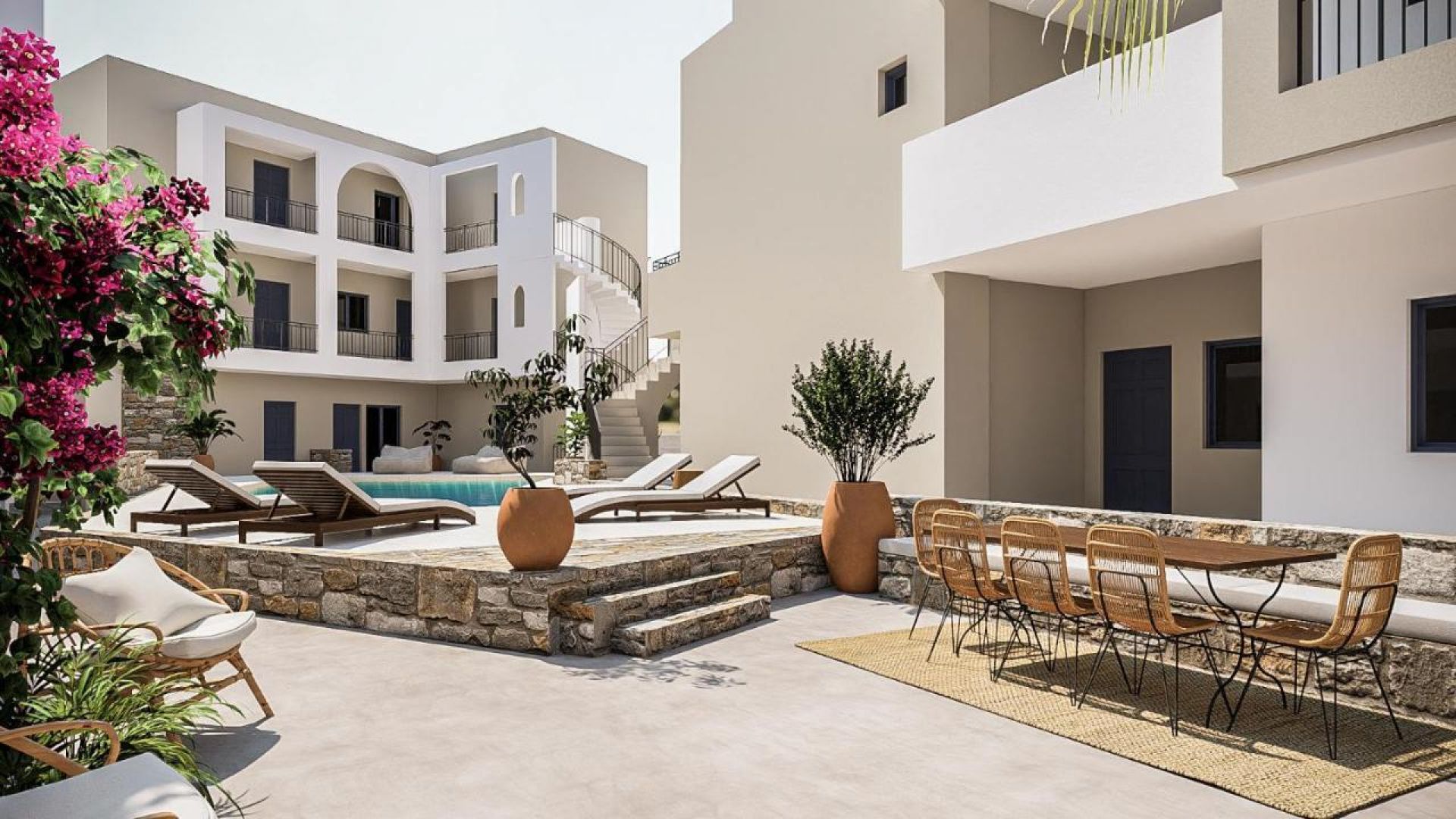 Всички стаи и апартаменти са разположени в градината и плувния басейн, имат меки, релаксиращи тонове и предлагат красива гледка. Стаите и апартаментите варират от класическата модерност и всяка стая е индивидуално декорирана с оригинални произведения на изкуството и поразителни, но изискани цветове.
