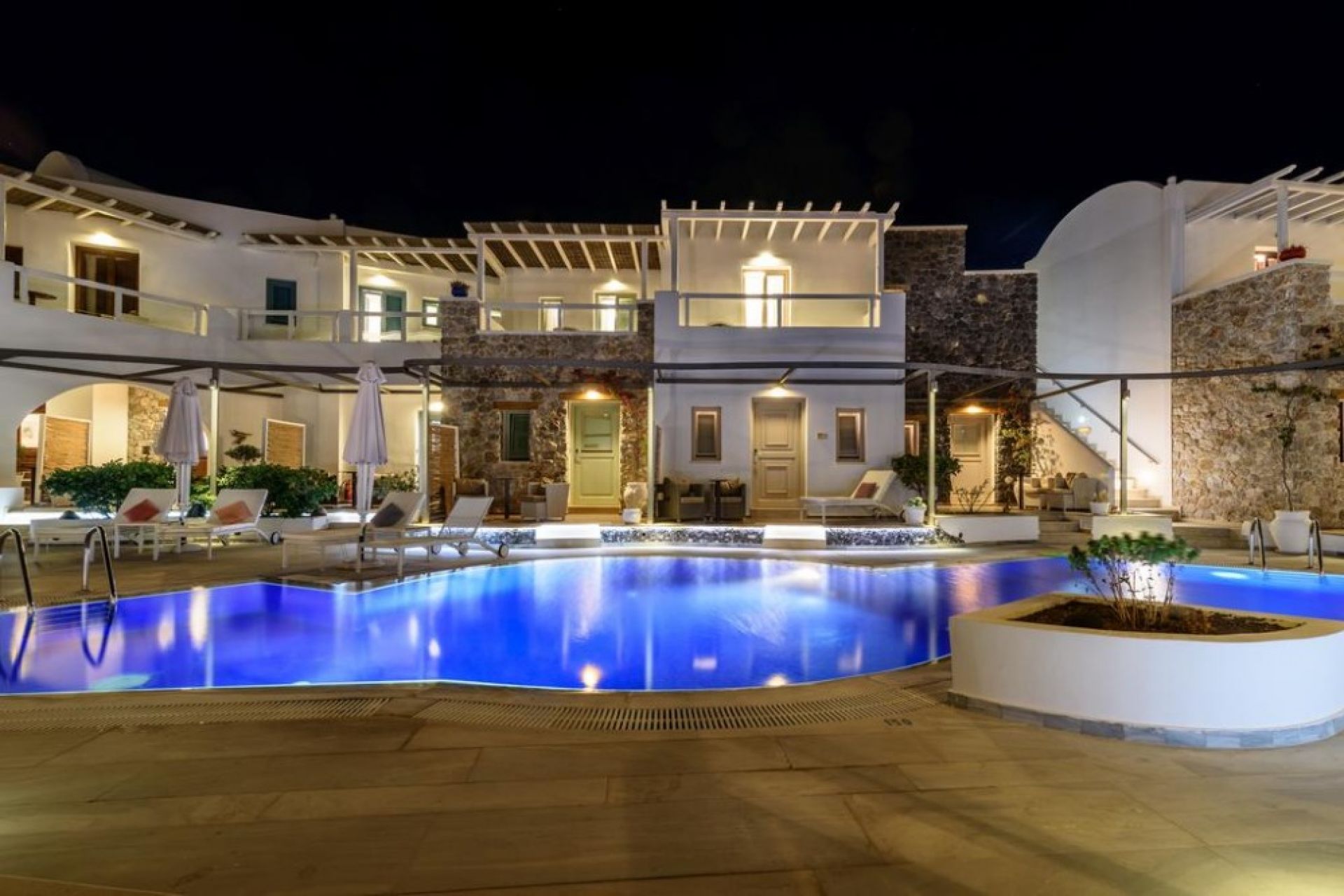 Хотелът е разположен на 4 километра от летище Санторини, на 8 километра от оживения град Фира - столица на остров Санторини, на 11 км. от пристанището.