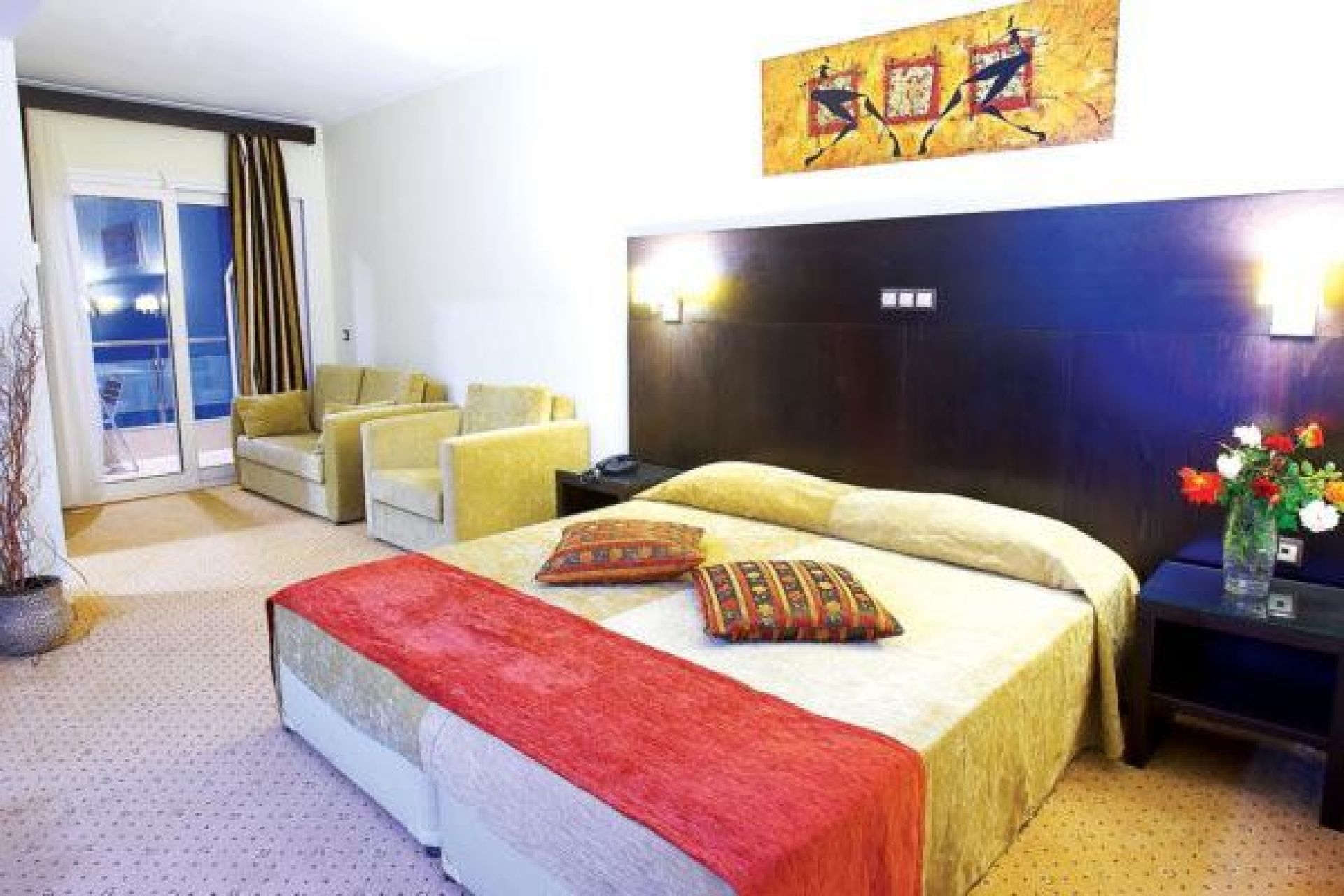 Стаи: Оборудвани са с климатик, сешоар, хладилник, радио, сейф ( платен 1 € на ден), сателитна телевизия, телефон. Бебешка кошара на запитване ( 3 € на ден, плаща се на място)