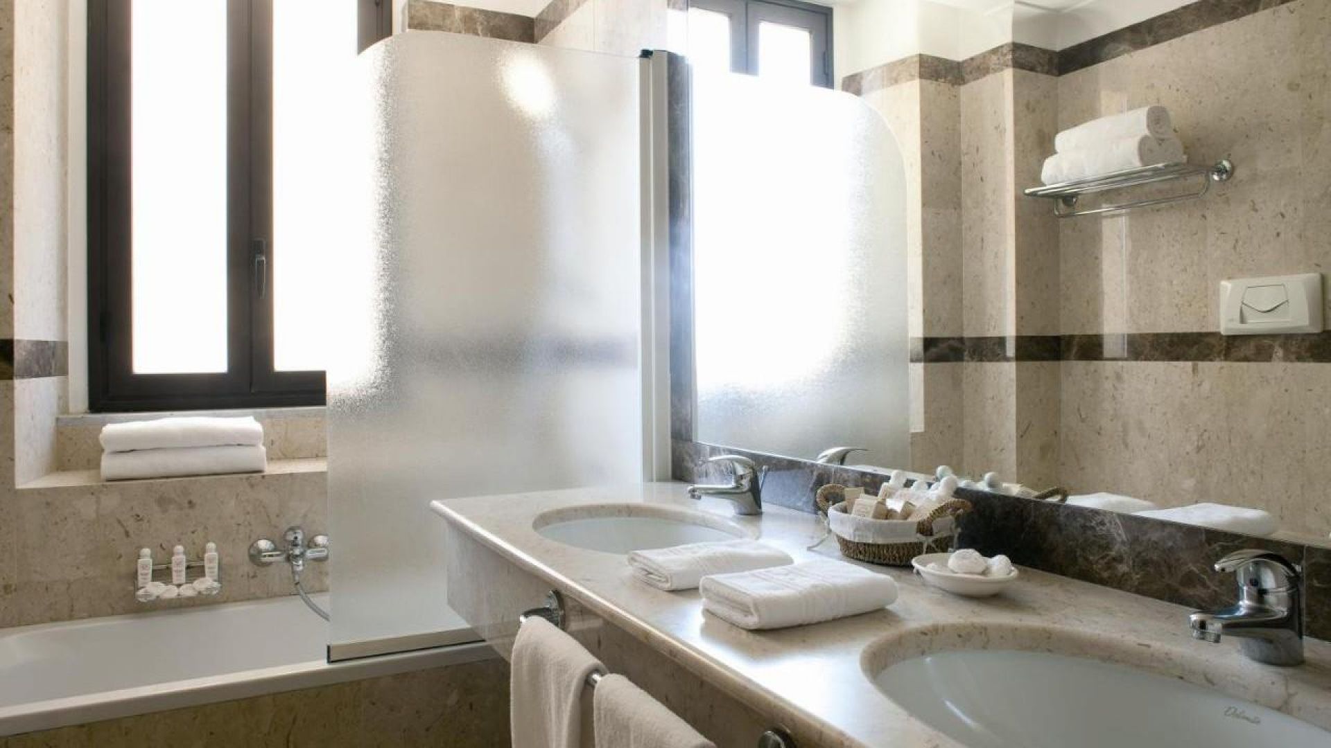 - Стандартна двойна стая (17 кв. м.) – Капацитет до 2 възрастни - Елегантно и стилно обзаведени стаи, снабдени със спалня или с отделни легла, с френски прозорец или тераса, баня с вана или душ с една или две мивки. Някои от стаите са с изглед към двора.