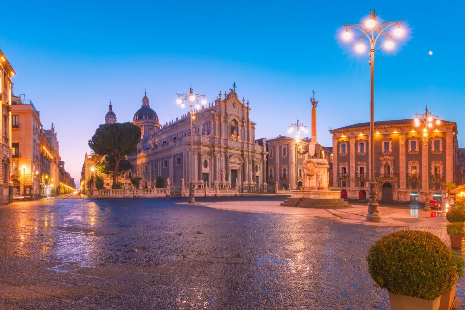 Закуска. Трансфер хотел - летище в Бергамо.Вътрешен полет Бергамо - Катания с авиокомпания "Ryanair". Кацане на летището в Катания.Отпътуване за Таормина – перлата на Йонийско море. Известният сицилиански курорт е основан през 400 г. пр. Хр. на хълм над морето от бежанци от крайбрежния гръцки град Наксос. Изключителното разположение на Таормина е причина за прекрасната панорама, откриваща се от всяка точка на града. Автобусът оставя групата в подножието на града, откъдето чрез безплатен градски автобус ще достигнете до сърцето на града. Свободно време за самостоятелно разглеждане на красивата Таормина. Градът привлича със своите забележителности, свидетелстващи за дълголетната му история, и предлага разнообразие от възможности за развлечение. Тук Вие ще можете да се запознаете със забележителностите на Таормина – завладяващия гръцки театър, останките от римския одеон, площад „9 април“, площад „Дуомо“ с катедралата и Фонтана с кентавърката, да се разходите из малките романтични улички на града, да разгледате множеството магазинчета, в които ще намерите традиционни за острова произведения – ръчно изработени дантели, коралови бижута, керамика, да се насладите на изключителния вкус на домашно приготвени сладкиши и любимия италиански сладолед или да си отдъхнете в някое от прекрасните кафенета, сервиращи ароматно италианско кафе.Настаняване в хотел в Катания. Вечерна пешеходна разходка в центъра на града (включена в цената).Нощувка.