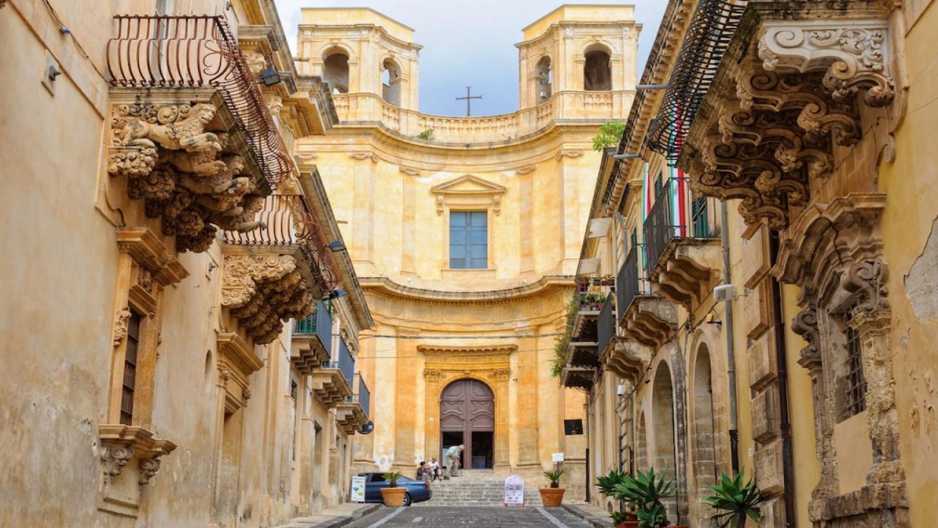 Туристическа програма с местен екскурзовод по централната улица „Виторио Емануеле“, където ще видите: внушителната Катедрала на Ното, църквите и манастирите от XVIII век, прочутия дворец „Палацо Николачи“ с най-красивите барокови балкони в света - пищно украсени с маски, грифони и кентаври.