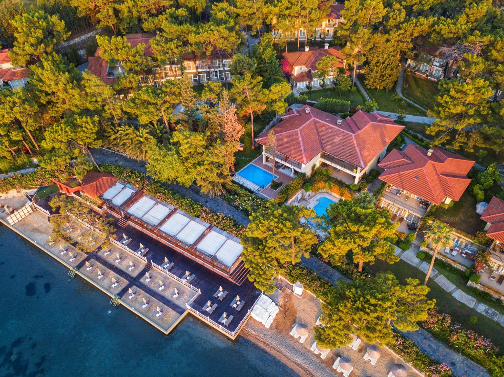 Основен ресторант, 5 а-ла-карт ресторанта (стек хаус, италиански ресторант, китайски ресторант, японски, рибен - срещу заплащане, кебап хаус - безплатен), 5 бара, 3 открити и 1 закрит басейн, магазини, СПА център, конферентни зали, паркинг. За децата: Детски басейн с водни пързалки, детска площадка, мини клуб (4-12 г.), мини амфитеатър, лунапарк. Безплатни услуги: Сауна, турска баня, парна баня, фитнес, плажен волейбол, аеробика, тенис на маса, тенис на корт, дартс, анимация, музика на живо. Платени услуги: Масаж, билярд, игрални автомати, оборудване на тенис корт, осветление за тенис корт, уроци по тенис, моторни водни спортове. Плаж: Собствен, пясъчен, 2 платформи – чадъри и шезлонги на плажа и при басейна – безплатно, плажни кърпи – срещу депозит.