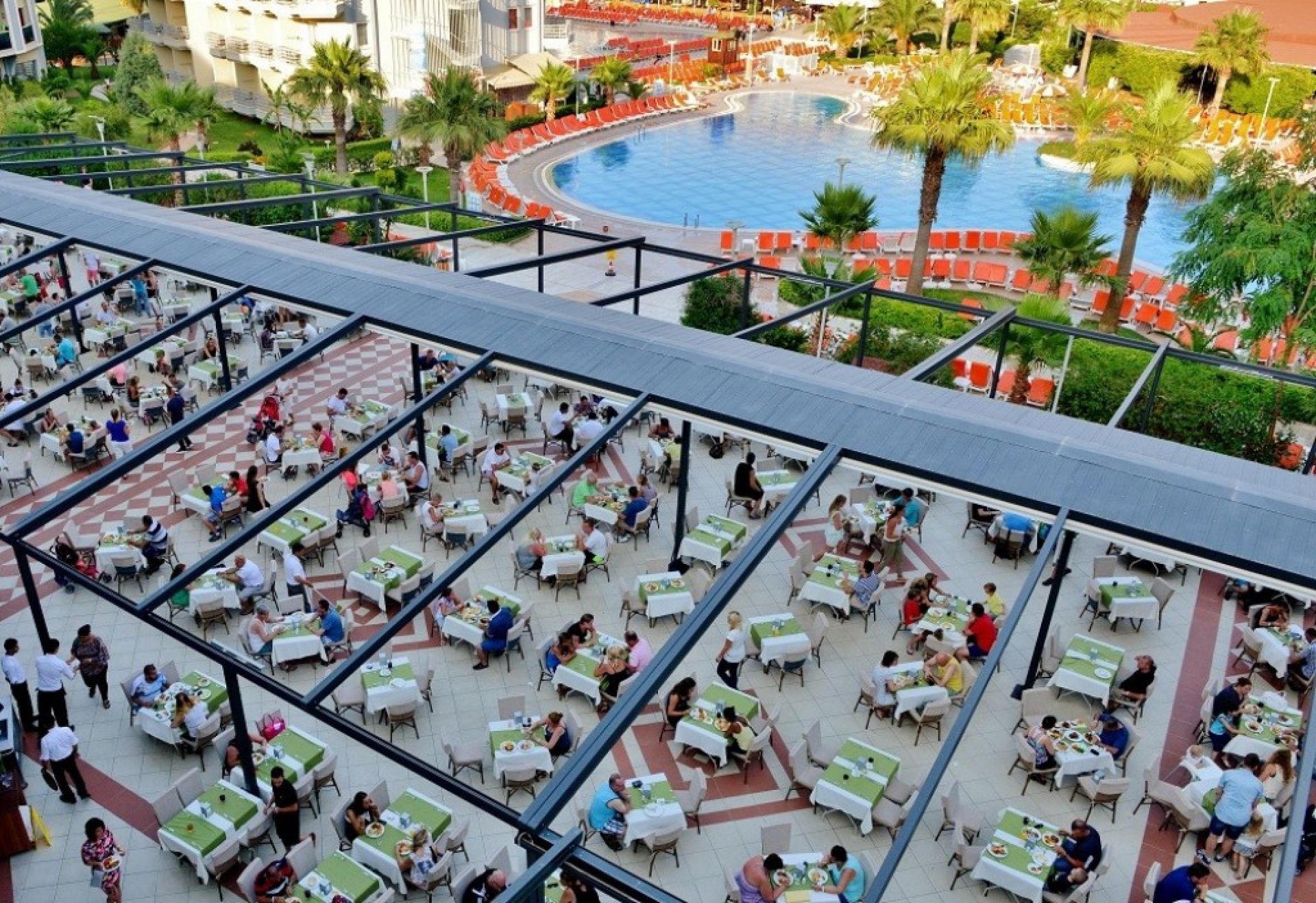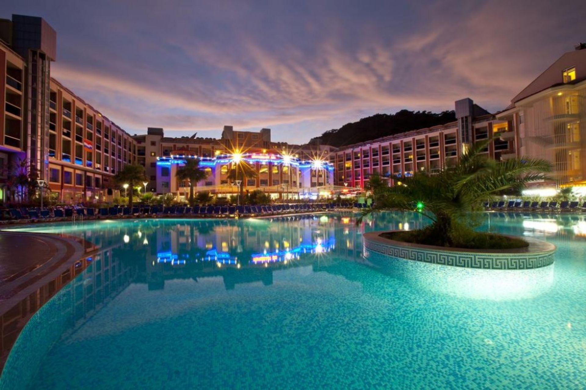 Основен ресторант, а-ла-карт ресторант (интернационална кухня - платен), 6 бара, 3 открити басейна ( 1100 м² и 650 м² )и 1 закрит басейн, аквапарк, магазини, СПА център. За децата: водни пързалки, 2 детски басейна, детска площадка, мини футбол, мини диско, мини клуб,(4-12г.) Безплатни услуги: сауна, турска баня, парна баня, фитнес, аеробика, баскетбол, волейбол, водна гимнастика, тенис на корт, тенис на маса, анимация, WI-FI интернет в лоби. Платени услуги: масаж, център за разкрасяване, пералня, химическо чистене, лекар, джакузи, оборудване за тенис корт, билярд, интернет кафе. Плаж: Собствен плаж в Ичмелер, на 3.5 км. от хотела. Безпатен шатъл до плажа в Ичмелер. Чадъри и шезлонги на басейна – безплатни и на плажа – безплатни. Не се предоставят плажни кърпи.