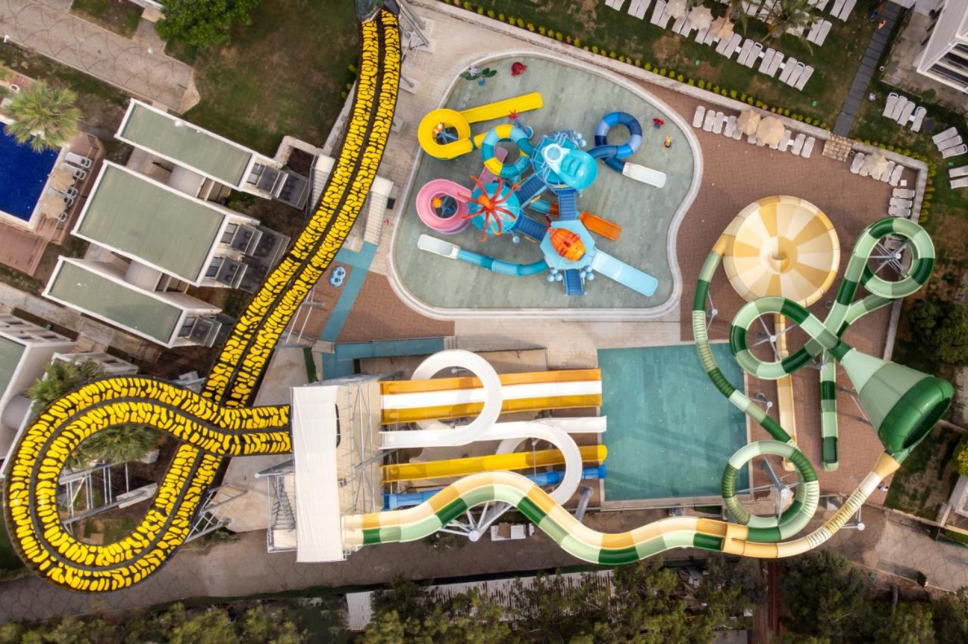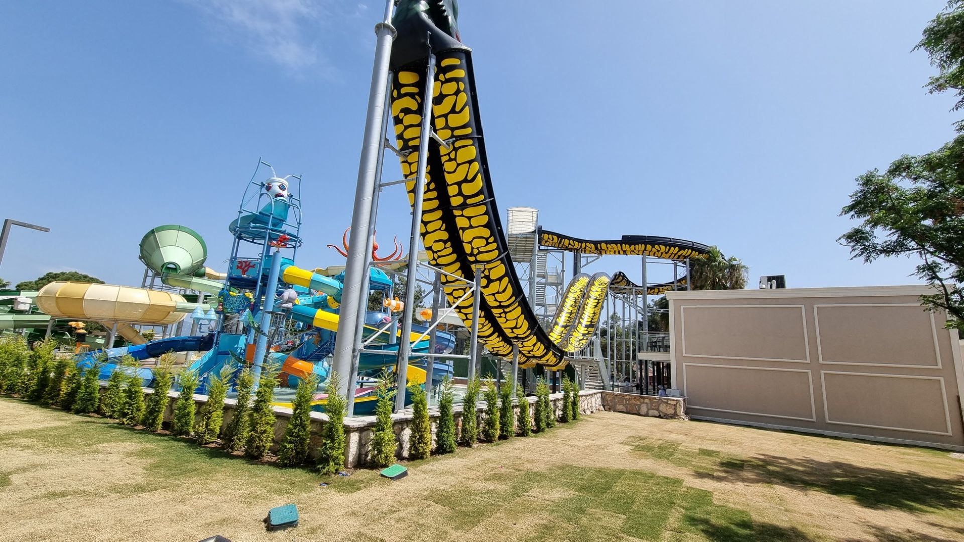 На разположение на гостите на хотела е аквапарк, който разполага с 2 басейна, 7 водни пързалки за възрастни, 5 водни пързалки за деца, центрофуга и водни съоръжения за най-малките.