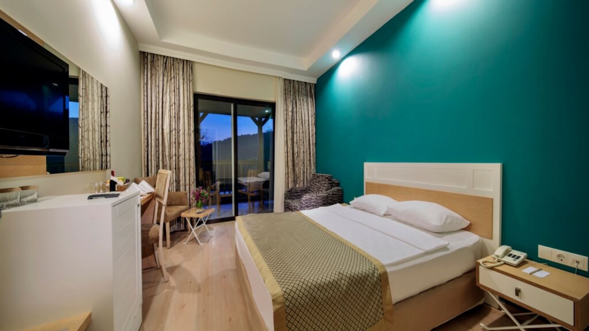 Всяка една стая е оборудвана с климатик, телевизия, телефон, баня с душ, сешоар, мини бар (безплатен), сейф, балкон или френски балкон, интернет.