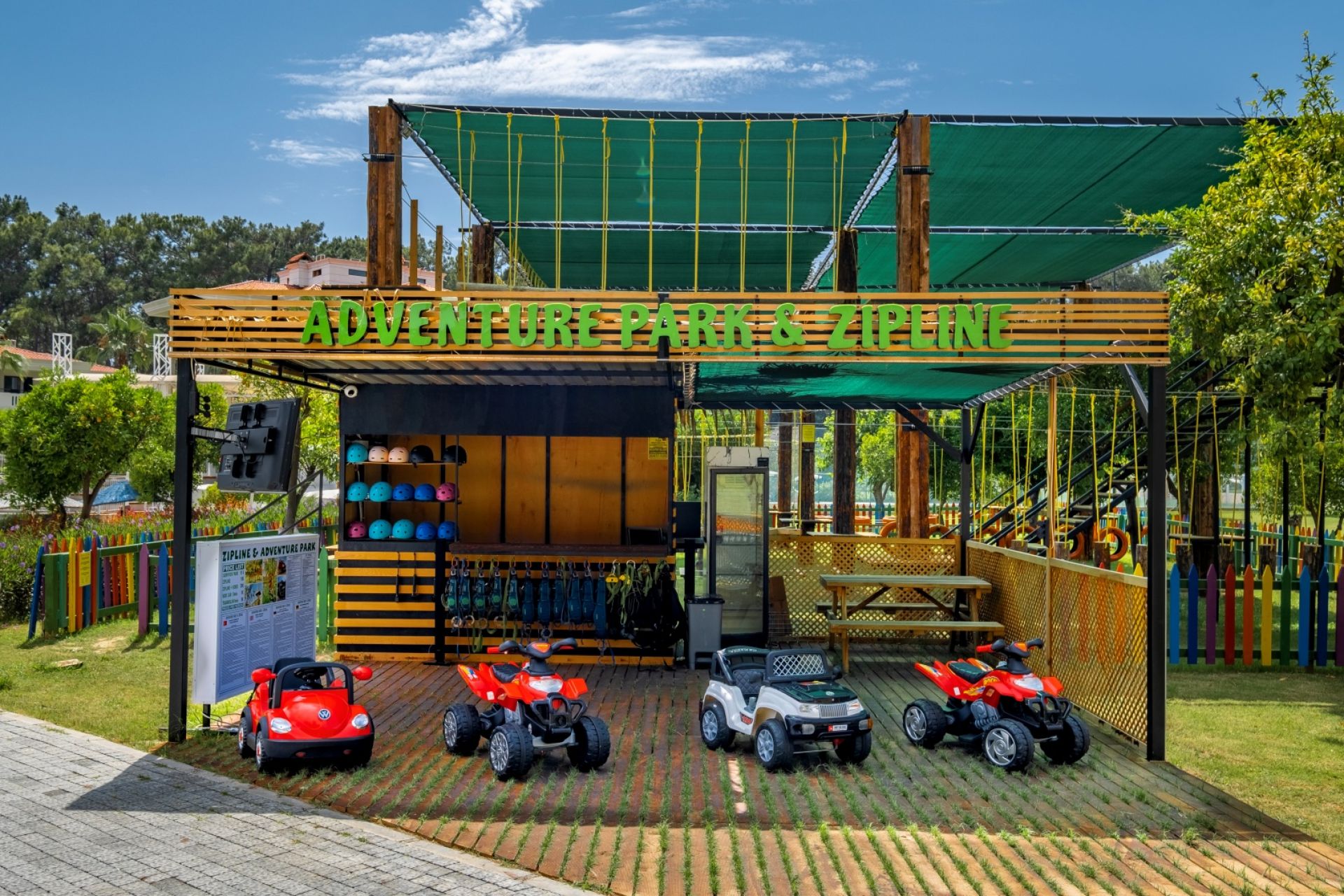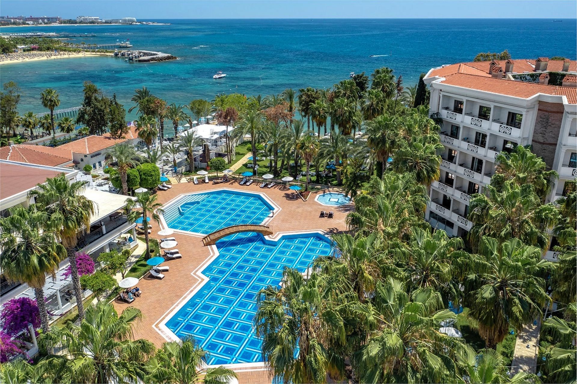 Основен ресторант, 2 а-ла-карт ресторанта (турски, италиански - срещу заплащане, с предварителна резервация), 2 снек ресторанта, сладкарница, 4 бара, 11 открити и 1 закрит басейн, амфитеатър, СПА център, магазини, 1 конферентна зала, паркинг.
