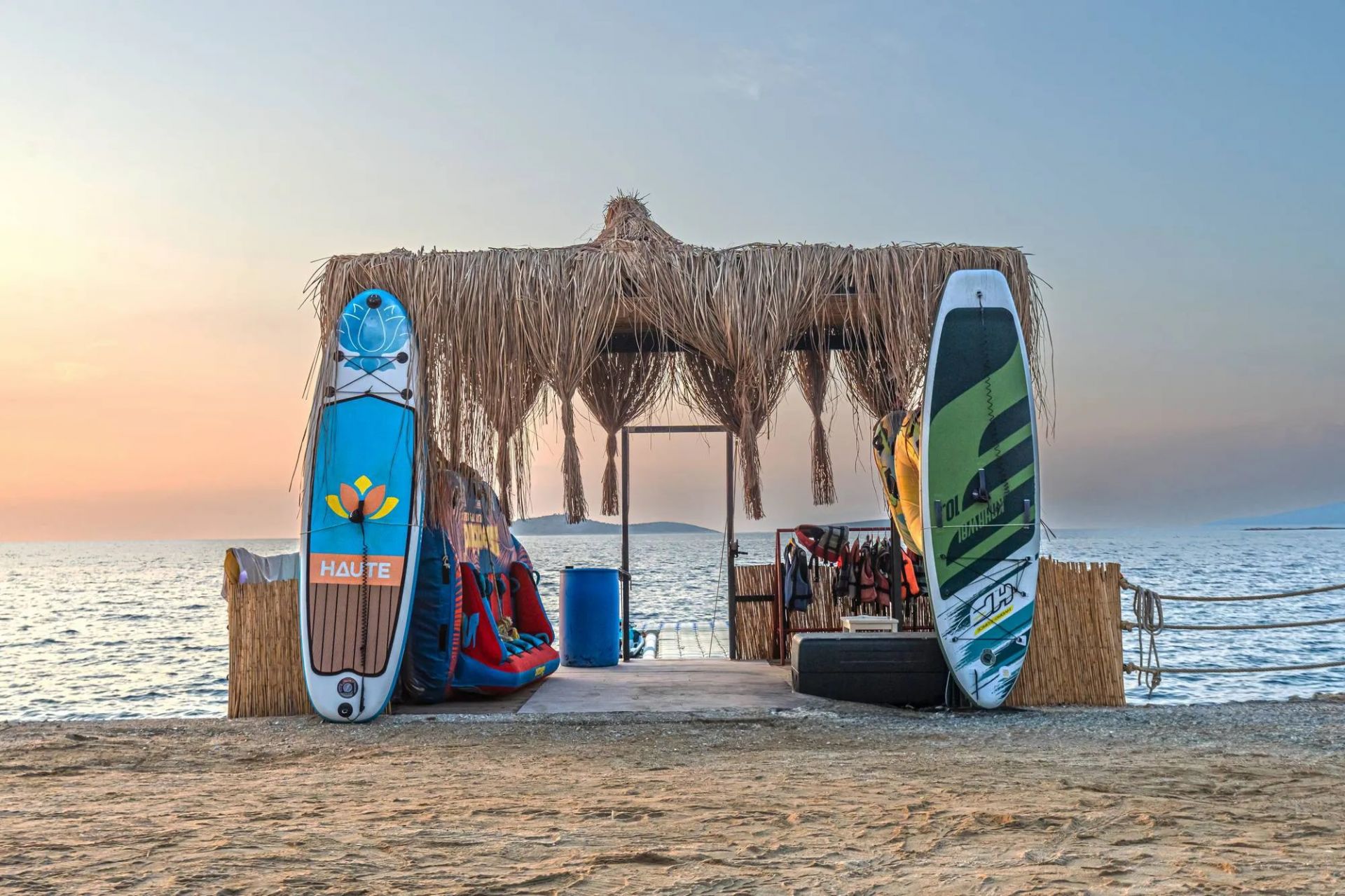 Собствен плаж и с платформа. При басейна и на плажа: чадъри, шезлонги и кърпи - безплатно.