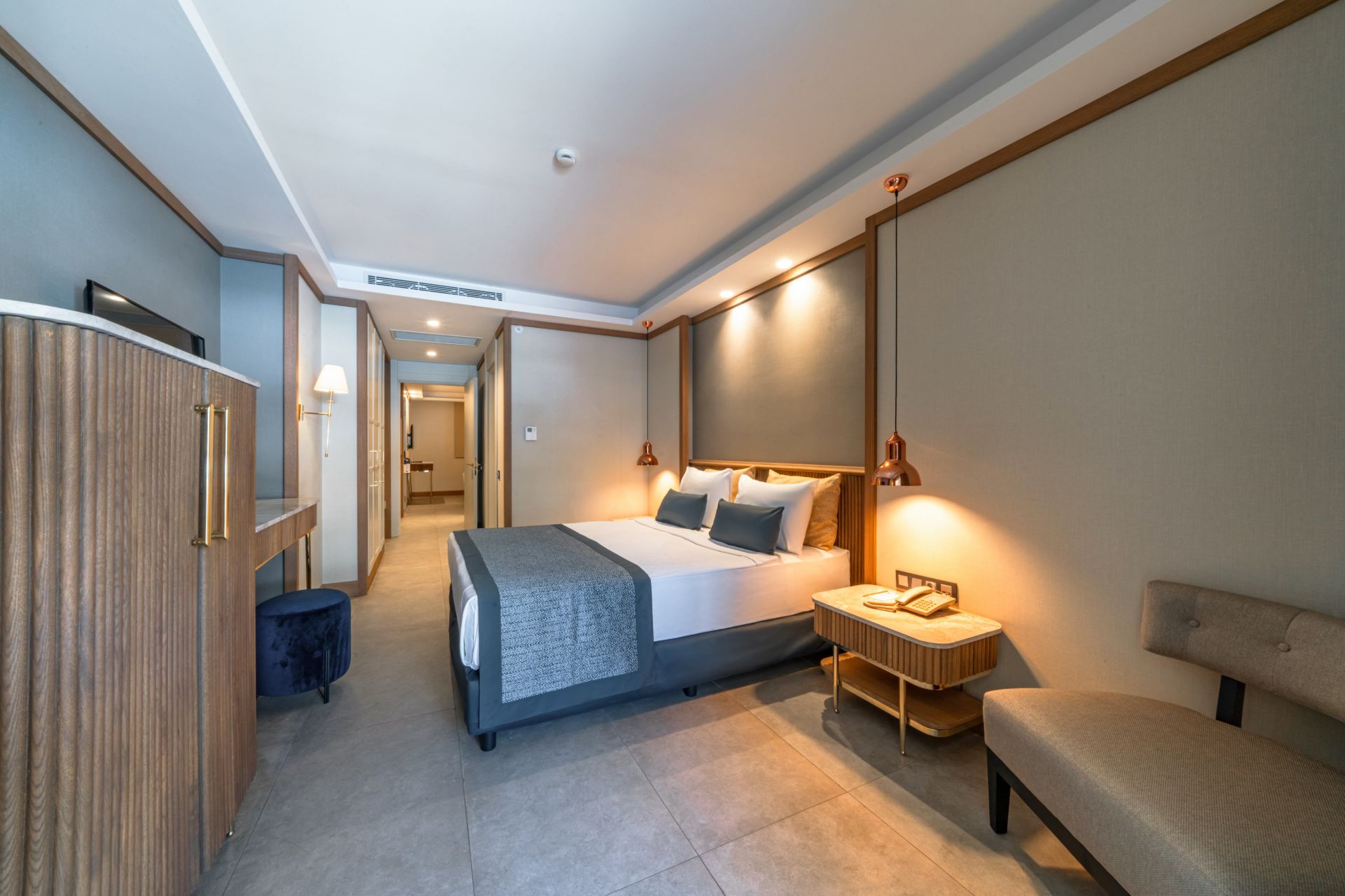 Хотелът разполага общо с 362 стаи, разположени в една основна сграда, от тях 132 Standard room (30 m²), 85 Deluxe room (37 m²), 137 Family room (41 m²). Всички стаи са оборудвани с климатик, телевизор, телефон, баня с душ, сешоар, сет за кафе и чай, мини бар (безплатен), сейф (безплатен), балкон, WI-FI на цялата територия на хотела. Почистване на стаите и смяна на кърпите - всеки ден, смяна на спално бельо - 3 пъти седмично.