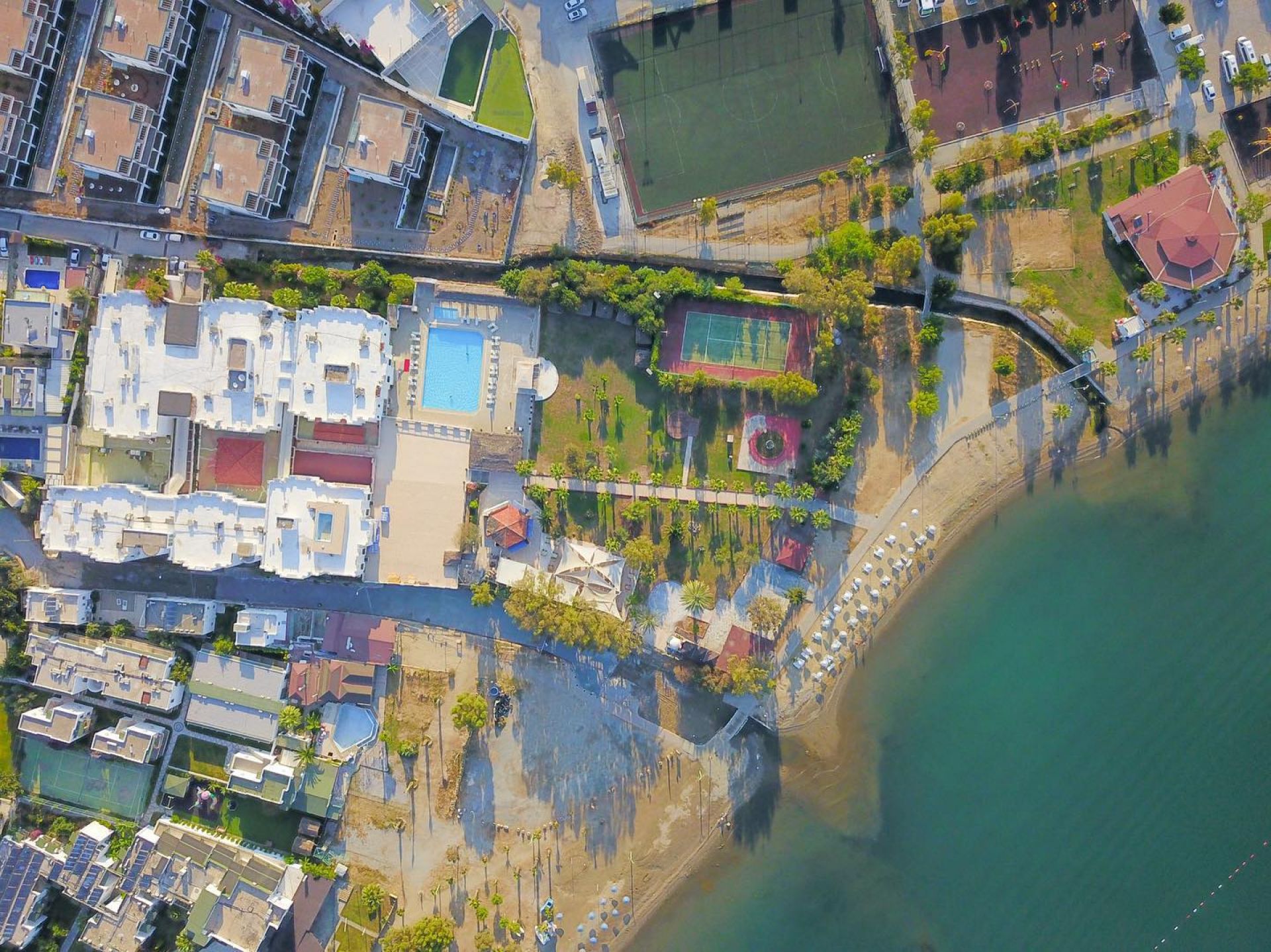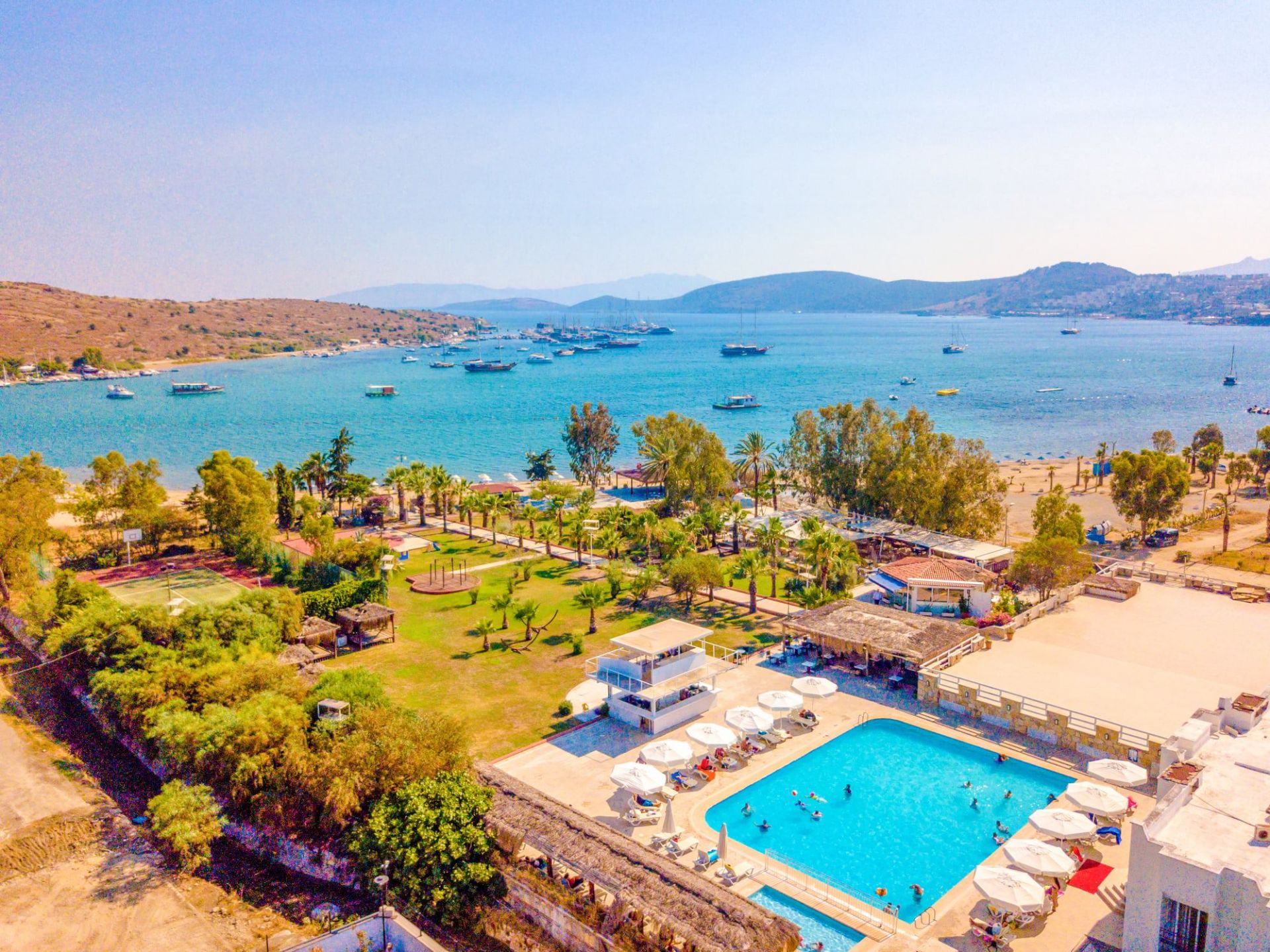 Намира се на 37 км от летище Бодрум, на 3 км от центъра на Бодрум, в района на Гюмбет, на брега на морето. Построен 1994 г. Реновиран 2015 г.