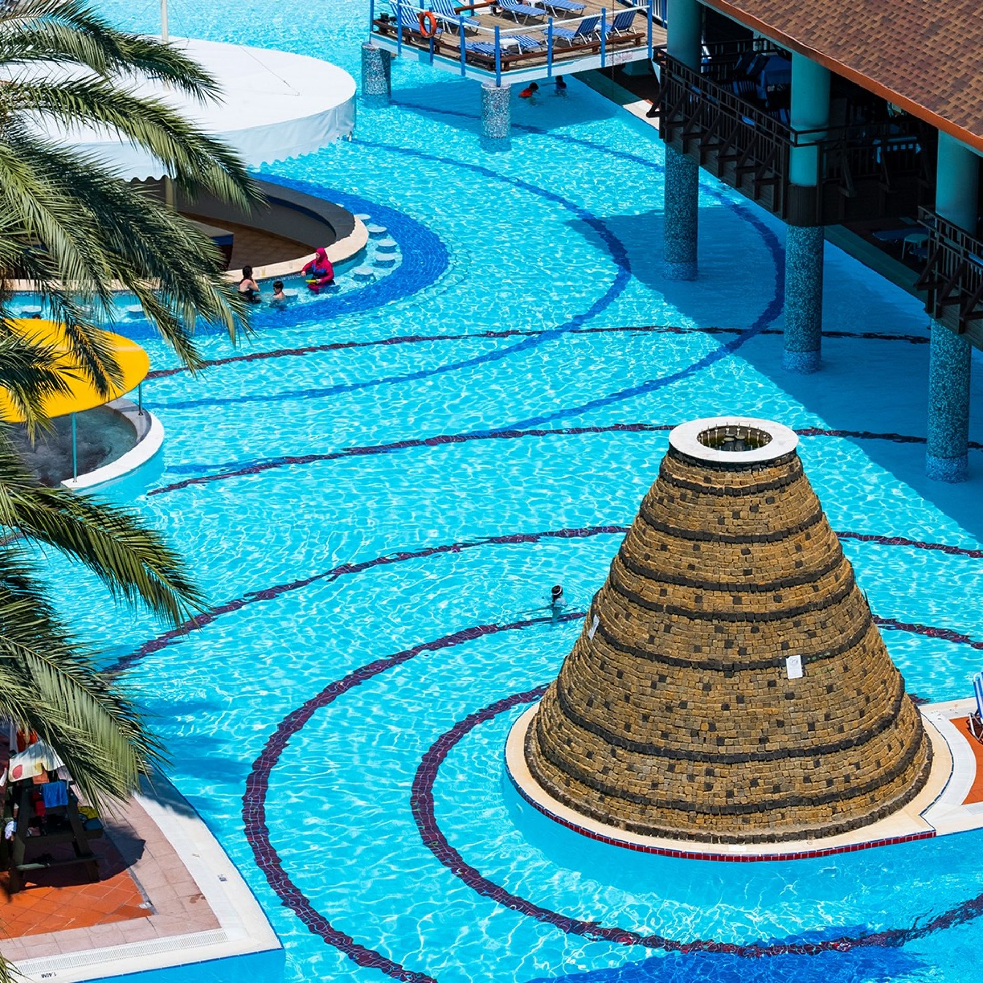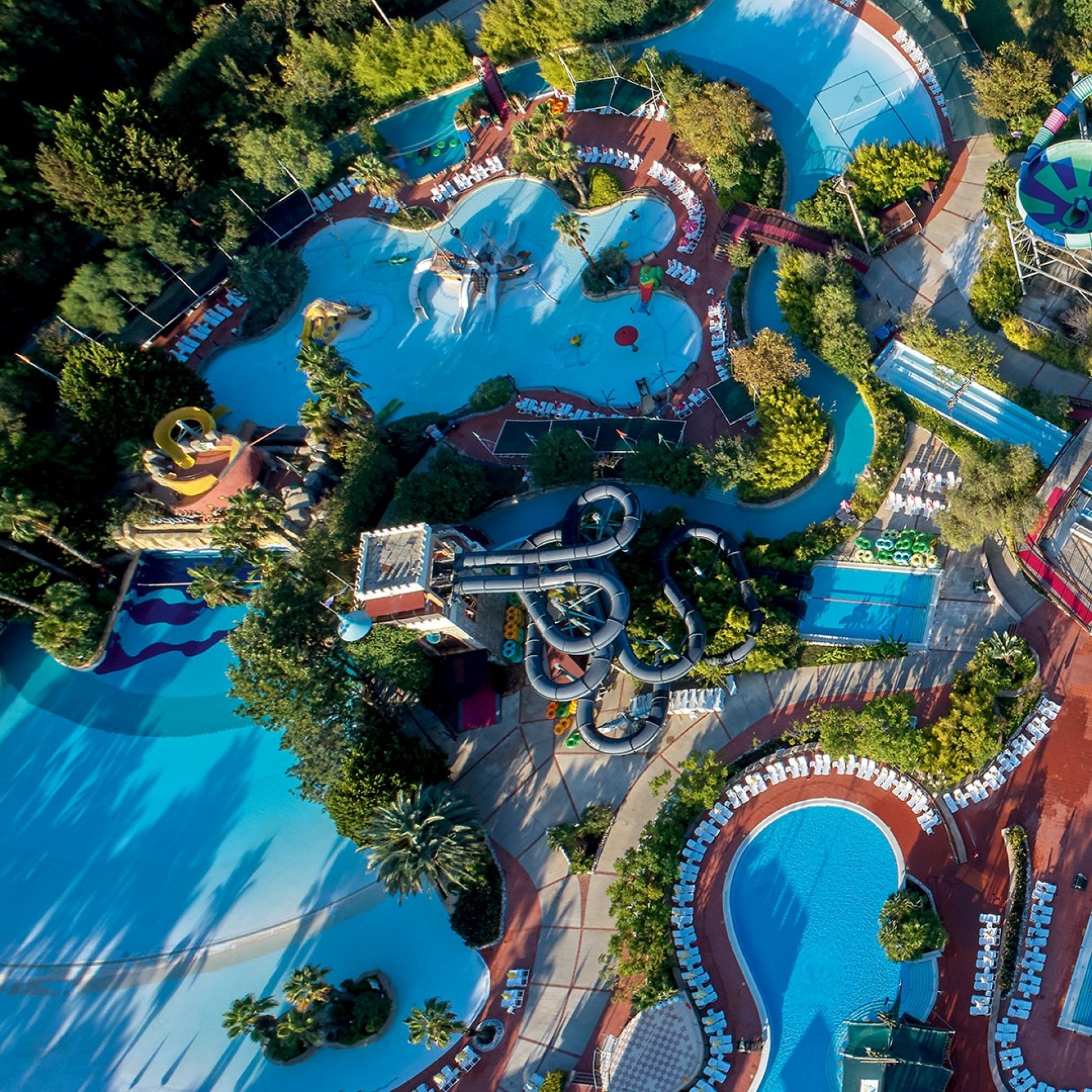 На гостите на хотела е осигурен неограничен безплатен достъп до Аквапарка, който разполага с 31 водни пързалки, от които няколко екстремни (Super combo,Screamer, Crazy Raft, Boomerango, Space Bowl и др.), басейн със 7 вида изкуствени вълни, 400 метра дълга Lazy River, Lily Pad - място за срещи на родители и техните деца, а за по-малките деца са налични: голяма детска зона с Treasure Island; Pirate’s Ship с 6 пързалки и интерактивни играчки, комплекси от пързалки Submarine Octopus, Frogslide и Wreckship.