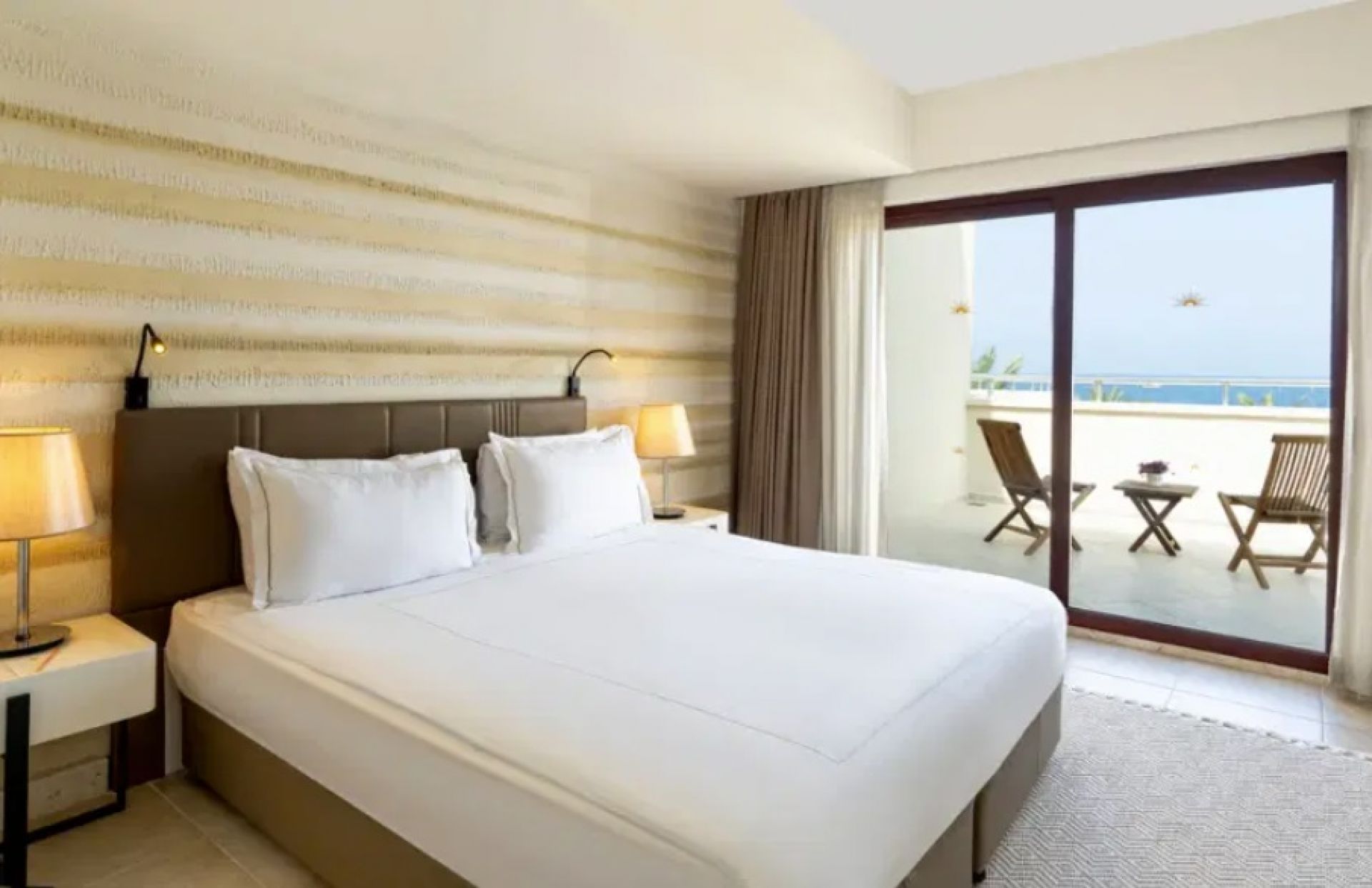 Хотелът разполага с общо 248 стаи с гледка градина или море и се състои от основна сграда и анекс сграда - Family Room Sea View (35-40 m² две помещения със спалня и отделни легла, сврързваща врата между помещенията; една баня с тоалетна; в основната сграда и анекс сграда към хотела), Standard Room (25-30 m² с вътрешен изглед са разположени в основната сграда, а с морски изглед и в анекс сградата на хотела), Handicapped room (30 m² разположени в основната сграда на приземен етаж), Select Superior Room (28 m² разположени в анекс сградата), Suite (45 m²).