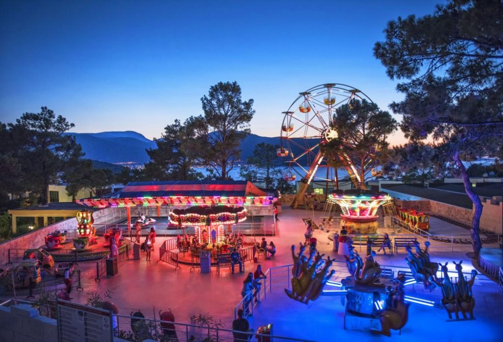 CANDYTOWN LUNA PARK е мястото за неверятно забавления по време на Вашия престой. Паркът представлява комплекс от различни забавления за всички възрасти. Малките гости могат да се забавляват в детското градче - миниатюра Portaventura Kids World (шопинг мол, пожарна, поликлиника, полиция, банка, театър, лего стая, фитнес и много други детски обществени сгради), с площ 5000 кв. м. Там могат да участват в различни групи за занимания и да получат сертификат. Разбира се, не трябва да пропускат и Лунапарка с 9 различни атракции включително виенско колело високо 17 метра, както и детска въртележка, картинг, лабиринт с лазер игри, детско влакче на ужасите и 8D кино. Има мини клуб за деца между 4 и 7 годишна възраст, който може да предложи на малките посетители детски фитнес, арт занимания, мини диско, игрална площадка, детска йога и безброй други забавления. За малко по-големите (на възраст между 8 и 12 години) в макси клуб се предлага търсене на съкровища, оригами, баскетбол, волейбол, водно поло, сумо игри, рали, футбол и още други. Тийнейджърите в хотела могат да посетят предвидения за тях клуб, в който играят тенис на маса, футбол, дартс, търсене на съкровища, игрална зала (playstation 5 и компютърни игри), бинго, баскетбол, кино, уроци и много други. Дино парк с 12 динозаври в реални размери. Най-новите атракциони са тематичния парк Candyland и виенското колело. Работно време в периода 01.05-15.10 от 20.00 до 23:00 (може да варират спрямо метеорологичните условия).