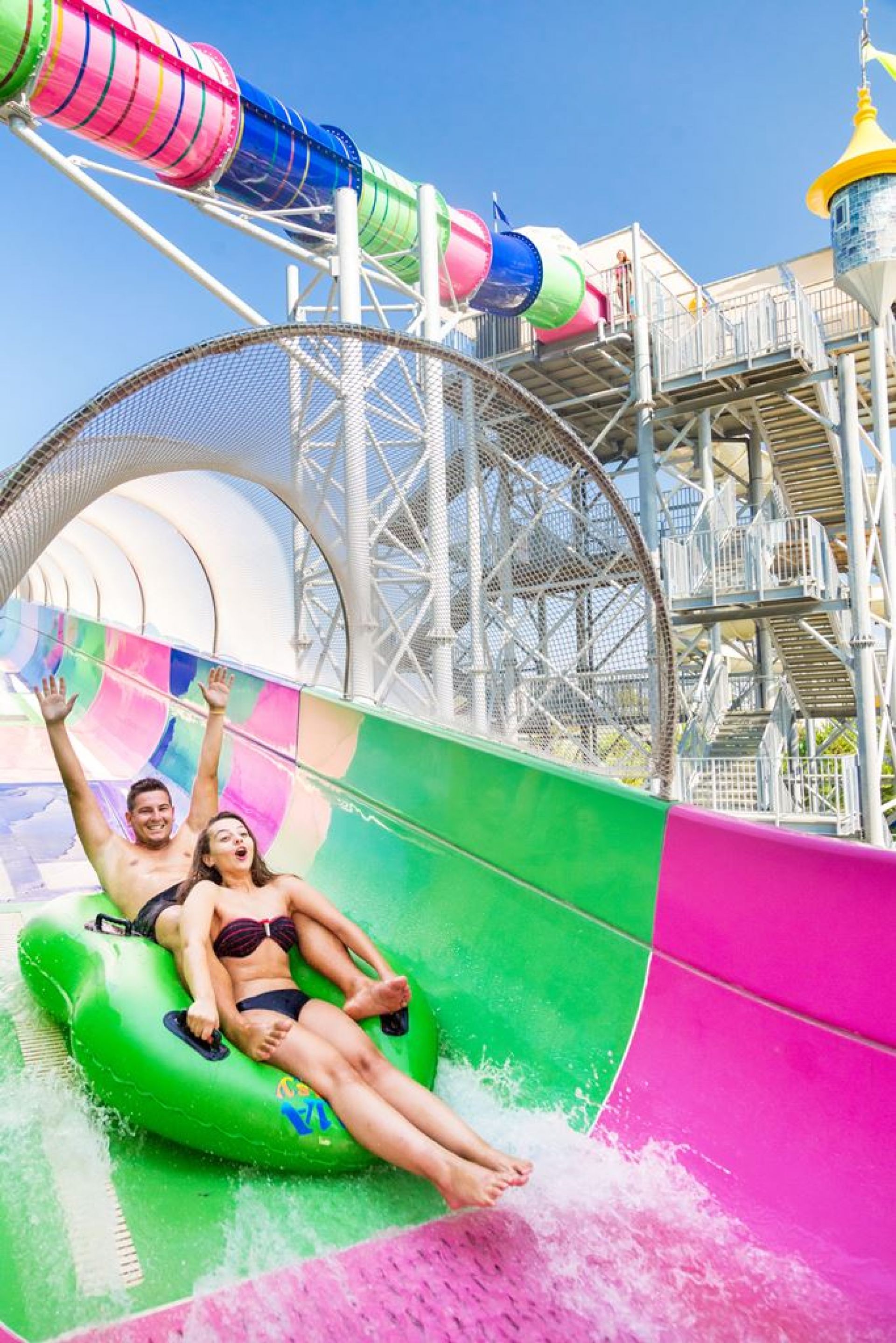 На разположение на гостите на хотела е аквапарк, който разполага с 31 водни пързалки, от които няколко екстремни (Super combo,Screamer, Crazy Raft, Boomerango, Space Bowl и др.), басейн със 7 вида изкуствени вълни, 400 метра дълга Lazy River, Lily Pad - място за срещи на родители и техните деца, а за по-малките деца са налични: голяма детска зона с пиратски кораб с 6 пързалки и интерактивни играчки, комплекс от пързалки „Подводен октопод“, жабешка пързалка и разбития кораб. Основни правила за ползване на Аквапарка: Не се препоръчва за хора с физически увреждания, сърдечни оплаквания и бременни жени. Деца на възраст под 12 години трябва да бъдат придружени от възрастен. Не се допуска използването на някои от пързалките от деца с височина под 120 см. Всички деца под 3-годишна възраст се изискват да носят "swim" памперси. Консумацията на хранa и напитки на теритотията на аквапарка е срещу заплащане.