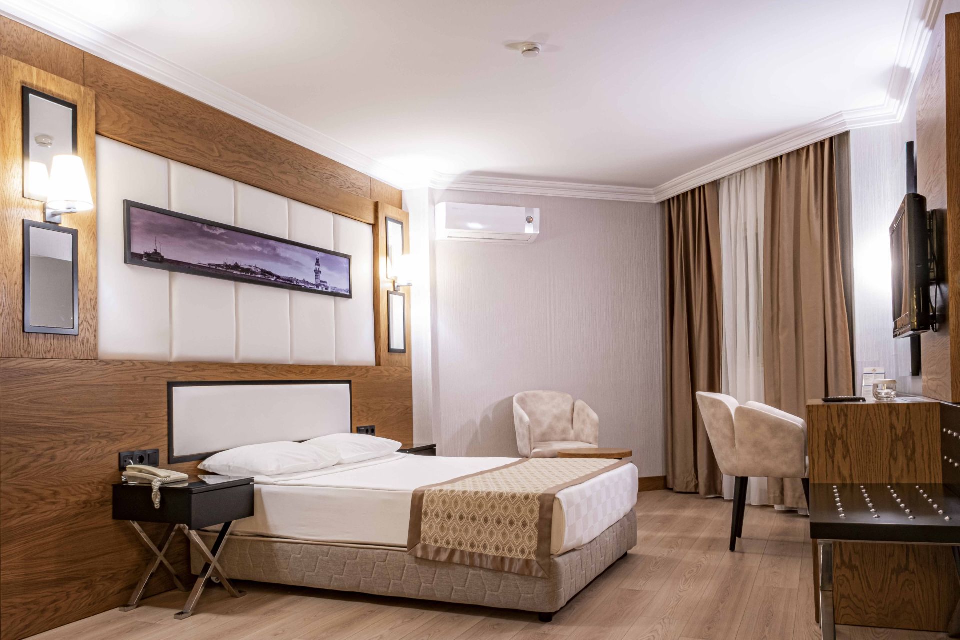 Всички стаи са оборудвани с климатик, телевизор, телефон, баня с душ, сешоар, сет за чай/кафе, минибар (безплатен), сейф (безплатен), балкон.