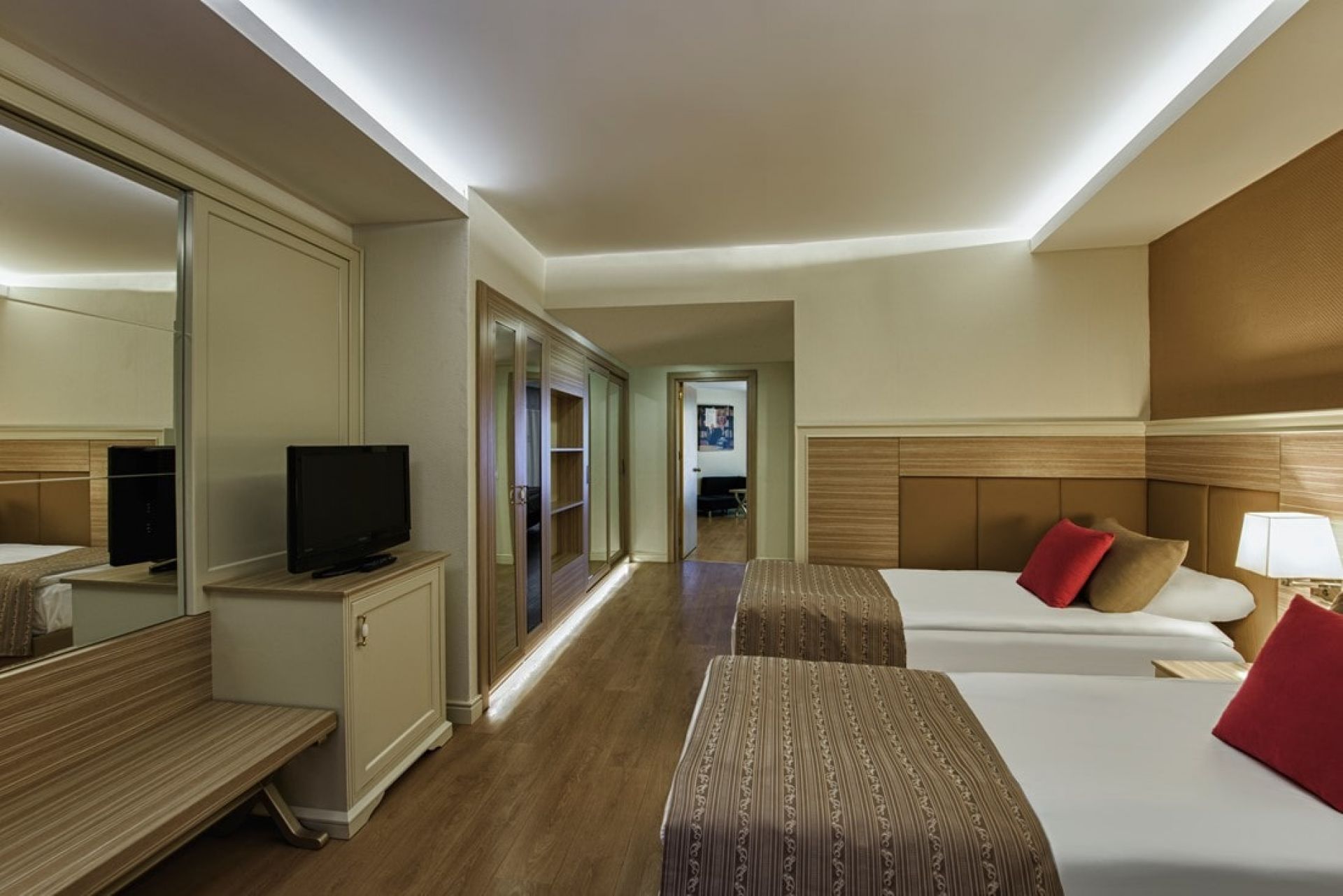 Оновен ресторант, 7 а - ла - карт ресторанта с едно безплатно посещение при 7-дневен престой - турски , италиански , рибен , китайски , японски , суши бар, мексикански), 14 бара, 2 открити и 1 закрит басейн, релакс басейн, водни пързалки, увеселителен парк, аквапарк , wi-fi(безпатно в стаите и на лобито), магазини, СПА център . За децата: Мини клуб ( 4 – 12 год. ) , детска дискотека , детски кинотеатър , детско меню , луна парк, аквапарк. Безплатни услуги: 2 тенис корта (с предварителна резервация и срещу депозит), турска баня, сауна, джакузи, фитнес център, плажен волейбол, дартс, кану, сърфинг, аеробика, водна гимнастика , аквапарк с 2 басейна , 3 детски басейна, анимация, вечерно шоу, жива музика, дискотека. Платени услуги: телефон, факс, уроци по тенис, масаж, пилинг, салон за красота, боулинг, билярд, игрална зала, интернет кафе, водни спортове, наргиле, търговски център.