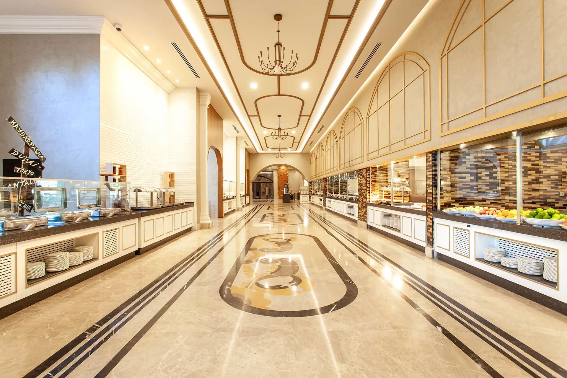 Основен ресторант, 4 а-ла-карт ресторанта ( турски, рибен, италиански, азиатски – платени с предвариелна резервация), 6 бара, сладкарница, 2 открити и 1 закрит басейн, аквапарк, СПА център, анимация, дискотека, паркинг.