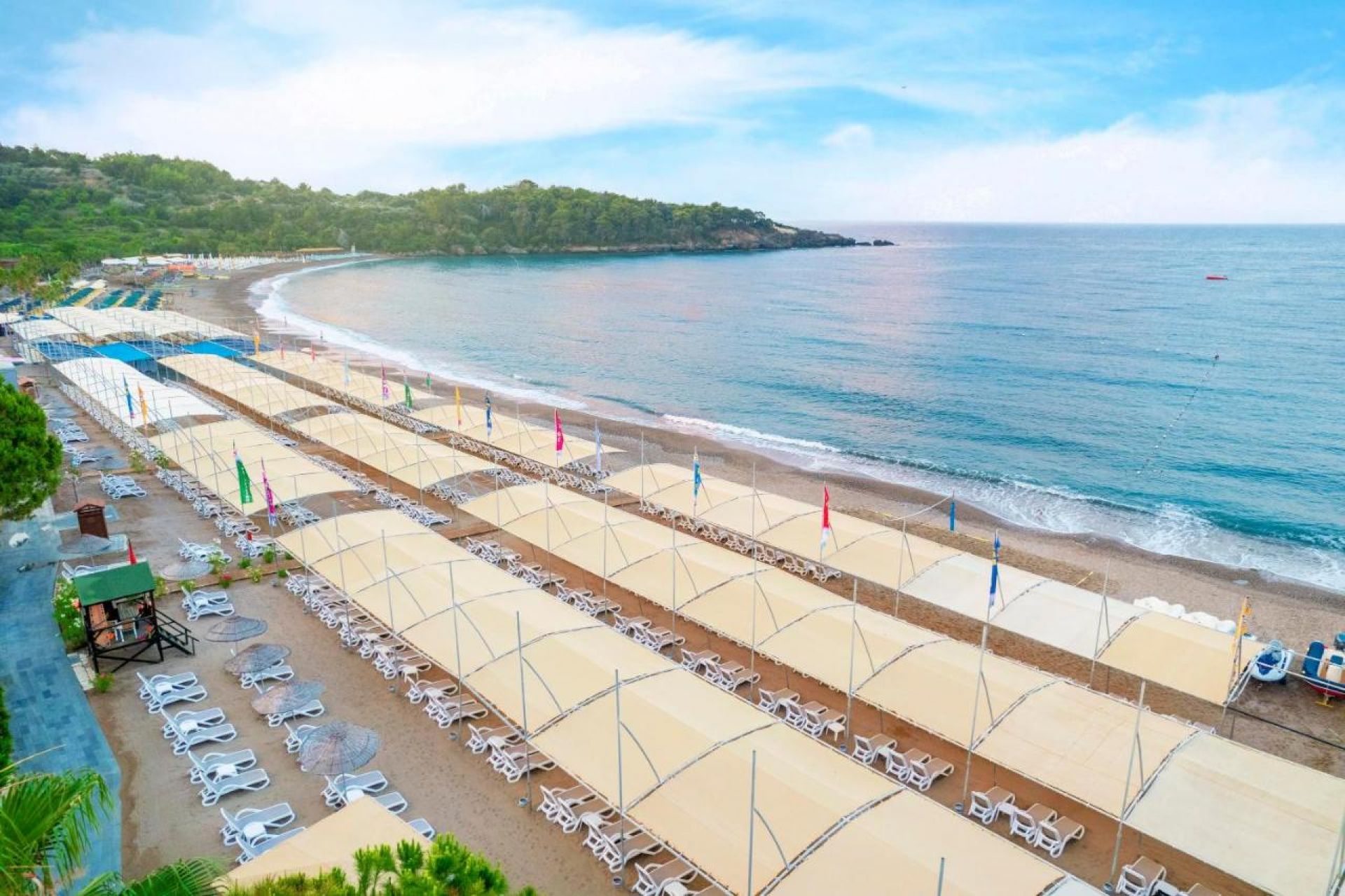 ПЛАЖ: Собствен, пясъчно-чакълест. Чадъри и шезлонги на плажа и при басейна – безплатно.