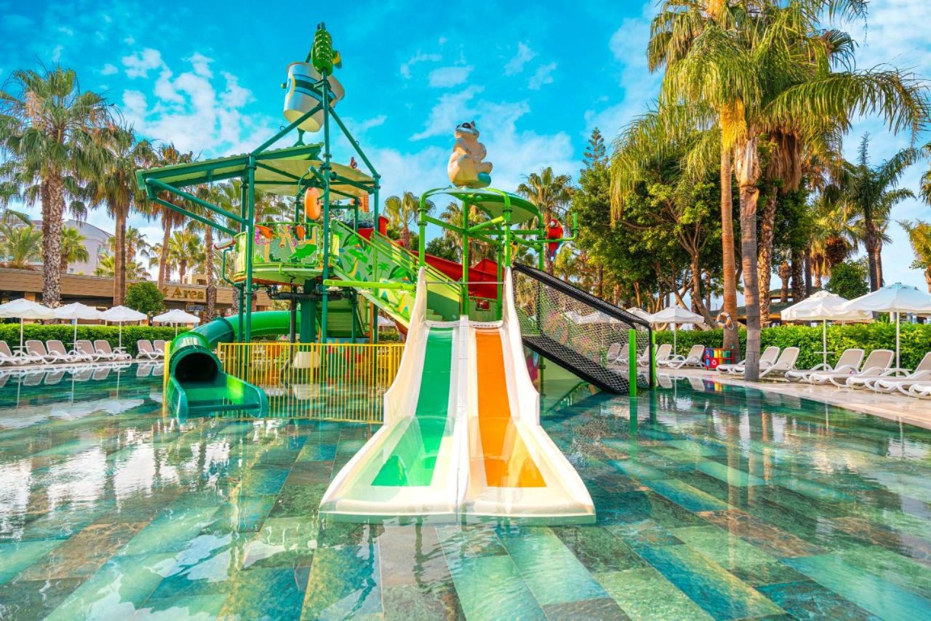 Основен ресторант, 3 а-лa-карт ресторанта – ( eдно безплатно посещение с предварителна резервация) турски, мексикански и японски-(платен), 6 бара,(1 от които работи 24 часа) дискотека, coffee corner, сладкарница, гьозлеме, основен басейн с 5 пързалки, водна кула с 3 пързалки, външен басейн с джакузи, вътрешен басей, магазини, SPA център, дискотека, 2 конферентни зали. За децата: Мини клуб (4-12 г.), детски басейн, детско меню, baby corner (24 часа), анимация. Безплатни услуги: турска баня, сауна, фитнес, плажен волейбол,зумба, аеробика, дартс, тенис на маса, тенис на корт, тенис ракети, баскетбол, волейбол, плажен волейбол. Платени услуги: масаж, аюрведа, грижи за кожата и тялото, фризьор, доктор, водни спортове, детегледачка, боулинг, билярд.