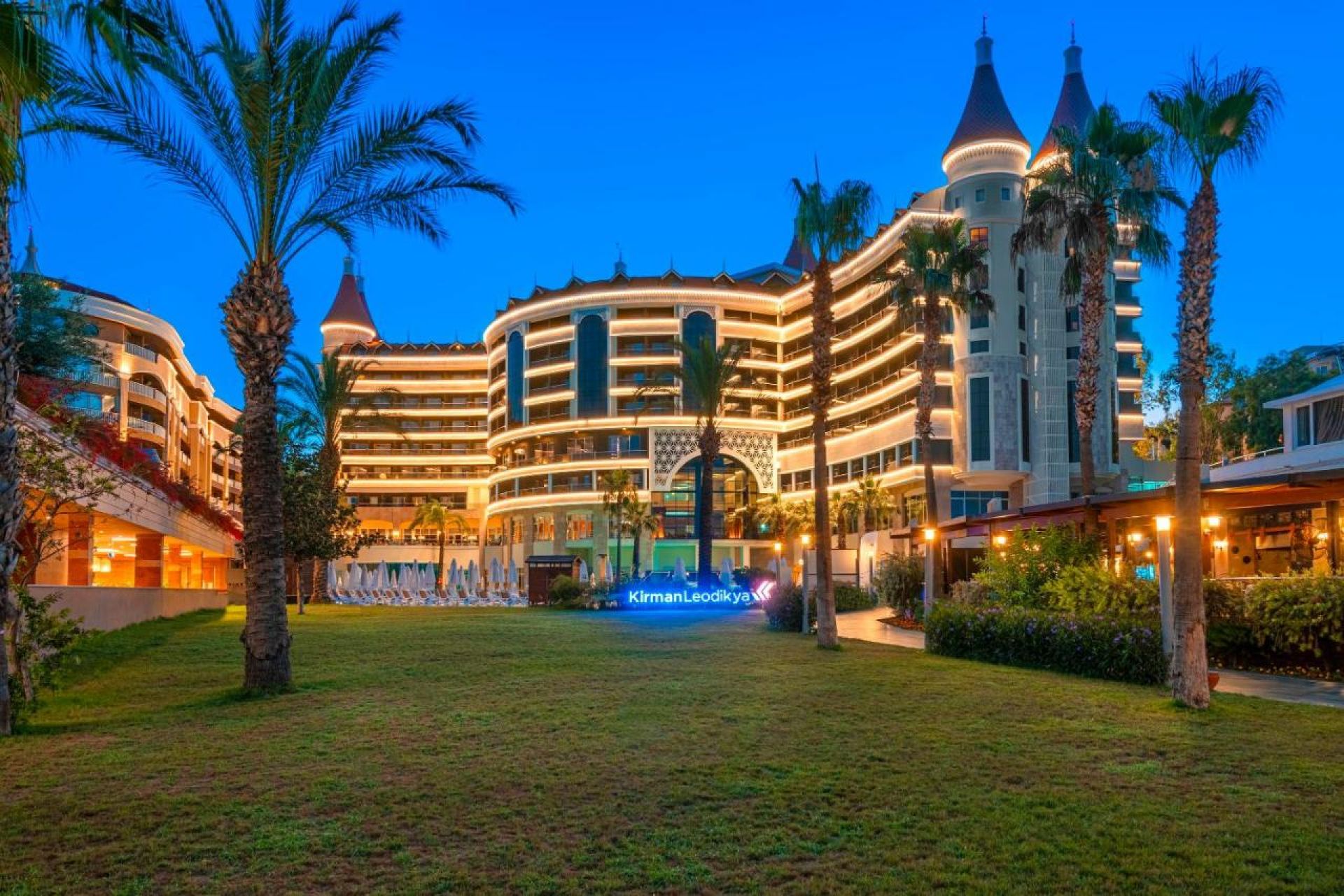 Оновен ресторант, 3 а - ла - карт ресторанта (едно безплатно посещение за 7- дневен престой с предварителна резервация), снек ресторант, гьозлеме, сладкарница, baby corner (24 часа – бебешка храна, йогурт и млечни напитки) 7 бара (1 от които работи 24 часа), дискотека, кът за кафе, 1 открит и 1 закрит басейн, водни пързалки, магазини, СПА център, амфитеатър.