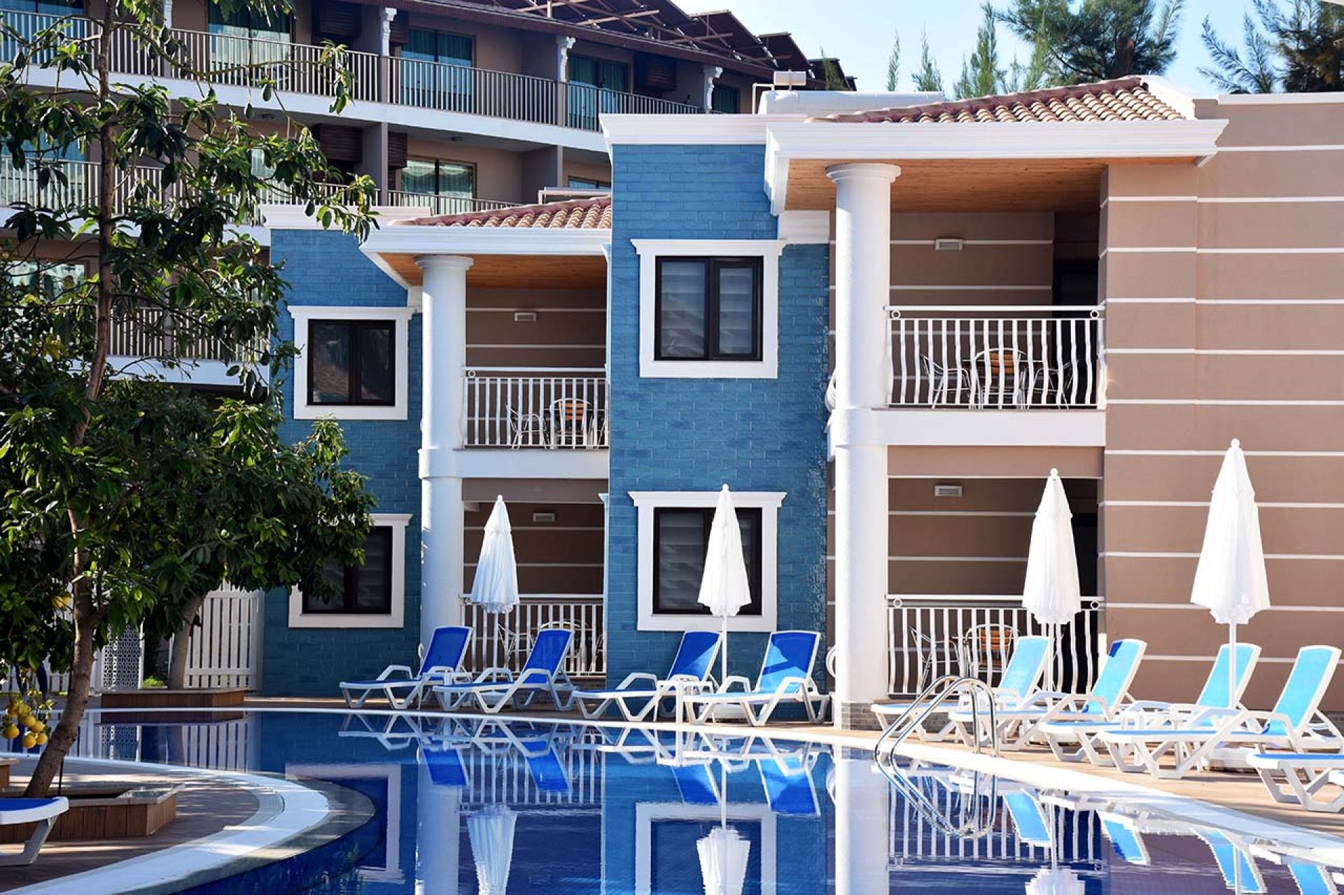 Хотелът разполага с общо 269 стаи, от които стаи в основна сграда Main Building: 8 Main Building Standard Room (27 м2), 51 Main Building Family Room with Pool View and Land View (изглед суша/басейн, 2 спални отделени с плъзгаща врата – 40 м2), 23 Main Building Family Room with Sea View (морски изглед, 2 спални отделени с плъзгаща врата – 41 м2); стаи в клубната част Garden: 27 Garden Standard Room (25 м2), 66 Garden Family Room Rabbit Concept with 2 Rooms (2 отделни спални - 37 м2), 16 Lagoon Family Room with 2 Rooms (2 отделни спални - 37 м2), 30 Garden Family Room Relax Pool View with 2 Rooms (2 отделни спални - 42 м2), 48 Garden Family Room Relax Pool View with 3 Rooms (2 отделни спални, 1 дневна - 60 м2).