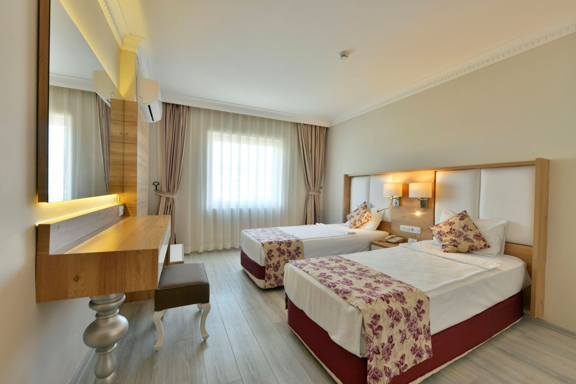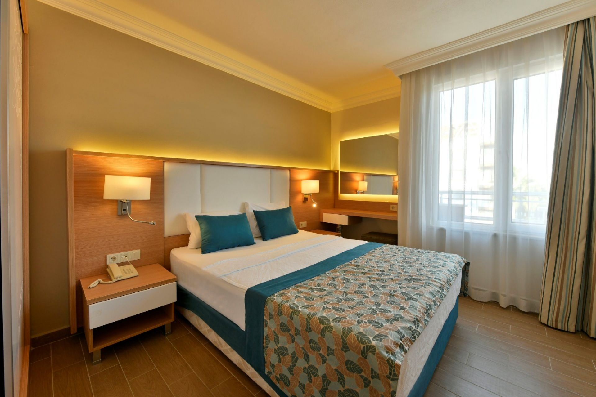 Хотелът разполага с общо 420 стаи, разположени в 2 основна сграда и една анекс сграда, от които Premium Standard Room (35м2), Standard Double Room (20м2), Family Room 1 (спалня, хол, баня - 42м2), Family Room 2 (спалня, хол, баня - 42м2, намират се в анекс сграда). Всички стаи са оборудвани с климатик, телевизор, телефон, баня с душ/вана, сешоар, минибар (безплатен - eжедневно се запълва с безалкохолни напитки и вода), сейф (безплатен), WI-FI (безплатен). Почистване на стаите и смяна на кърпите - всеки ден, смяна на спално бельо – 2 пъти седмично.
