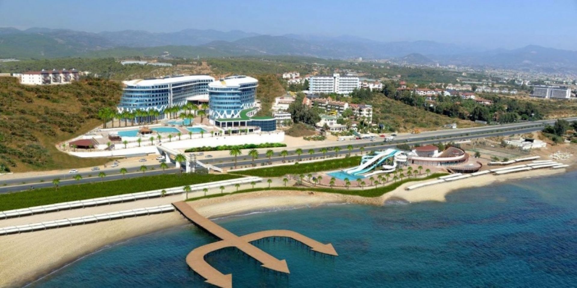 Намира се на 90 км. от летище Анталия, на 100 км. от центъра на Анталия, на 15 км. от центъра на Алания, на 150 м. от брега на морето. Посторен през 2013 г., с обща площ 40.000 м2.