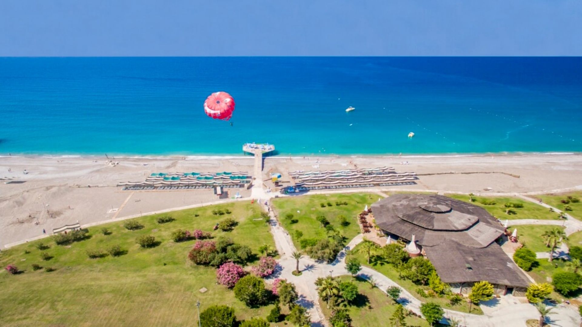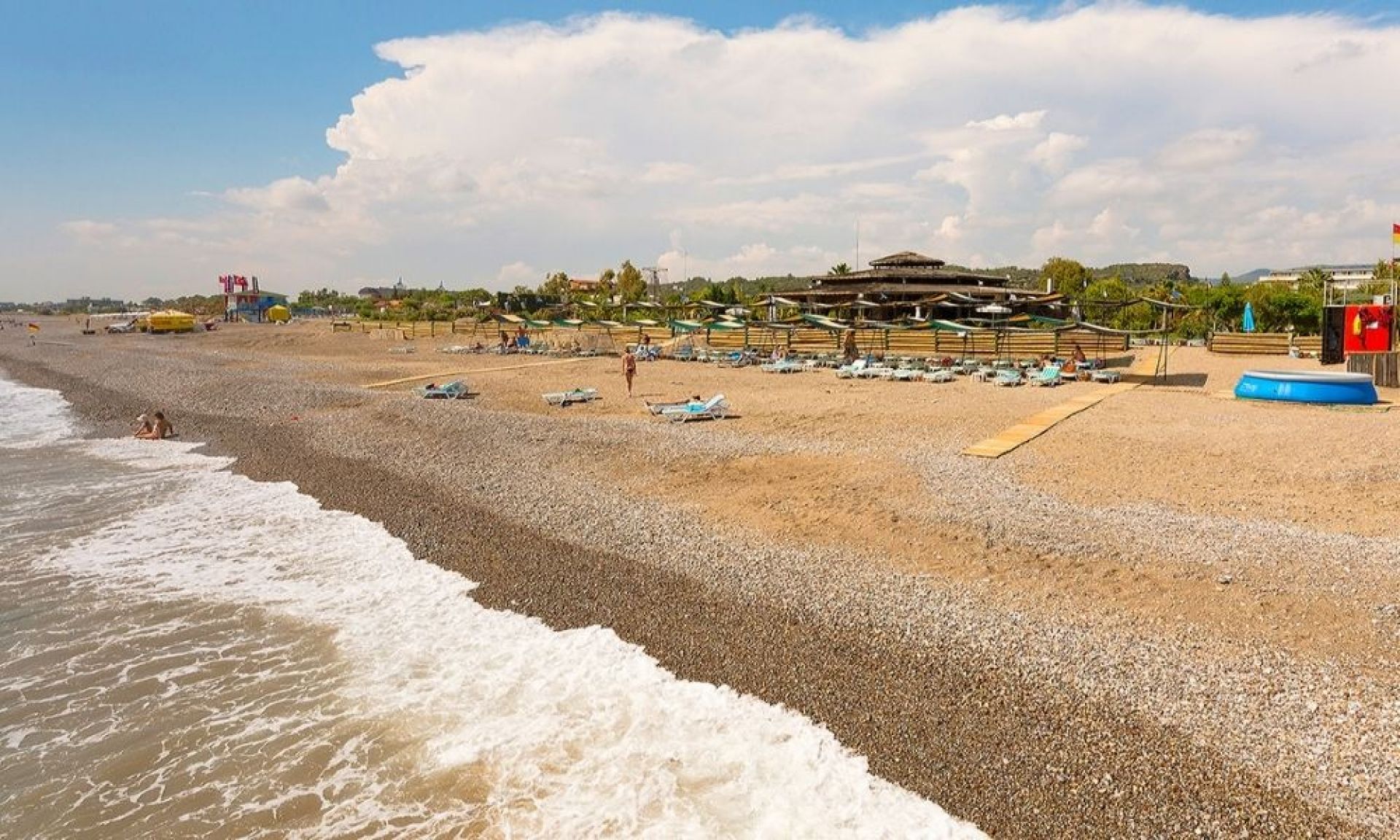 Собствен пясъчно-чакълест плаж. Чадъри, шезлонги, матраци на плажа и при басейна-безплатно. Плажни кърпи- безплатно, при смяна на кърпите-платено.