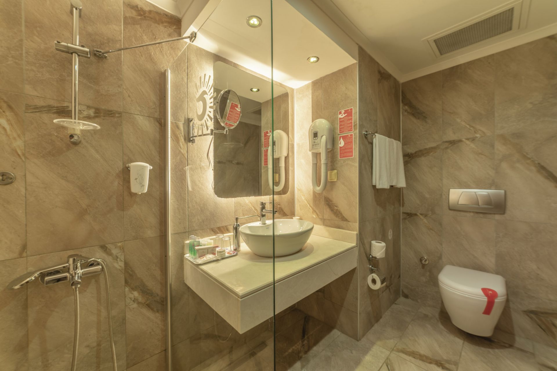 Всички стаи са оборудвани с климатик, телевизор, телефон, баня с душ, сешоар, минибар, сейф, балкон, Wi-Fi. Почистване на стаите и смяна на кърпите - всеки ден, смяна на спално бельо – 3 пъти в седмицата.