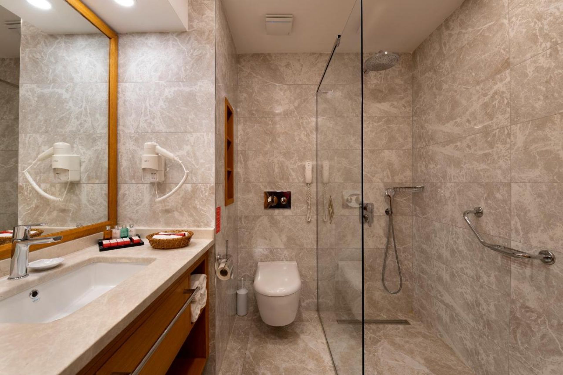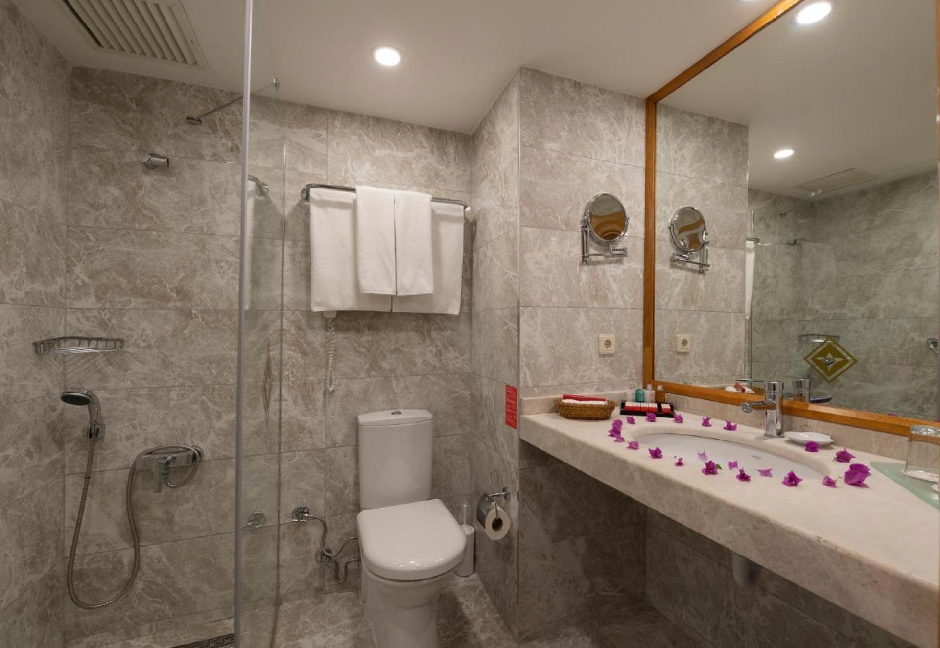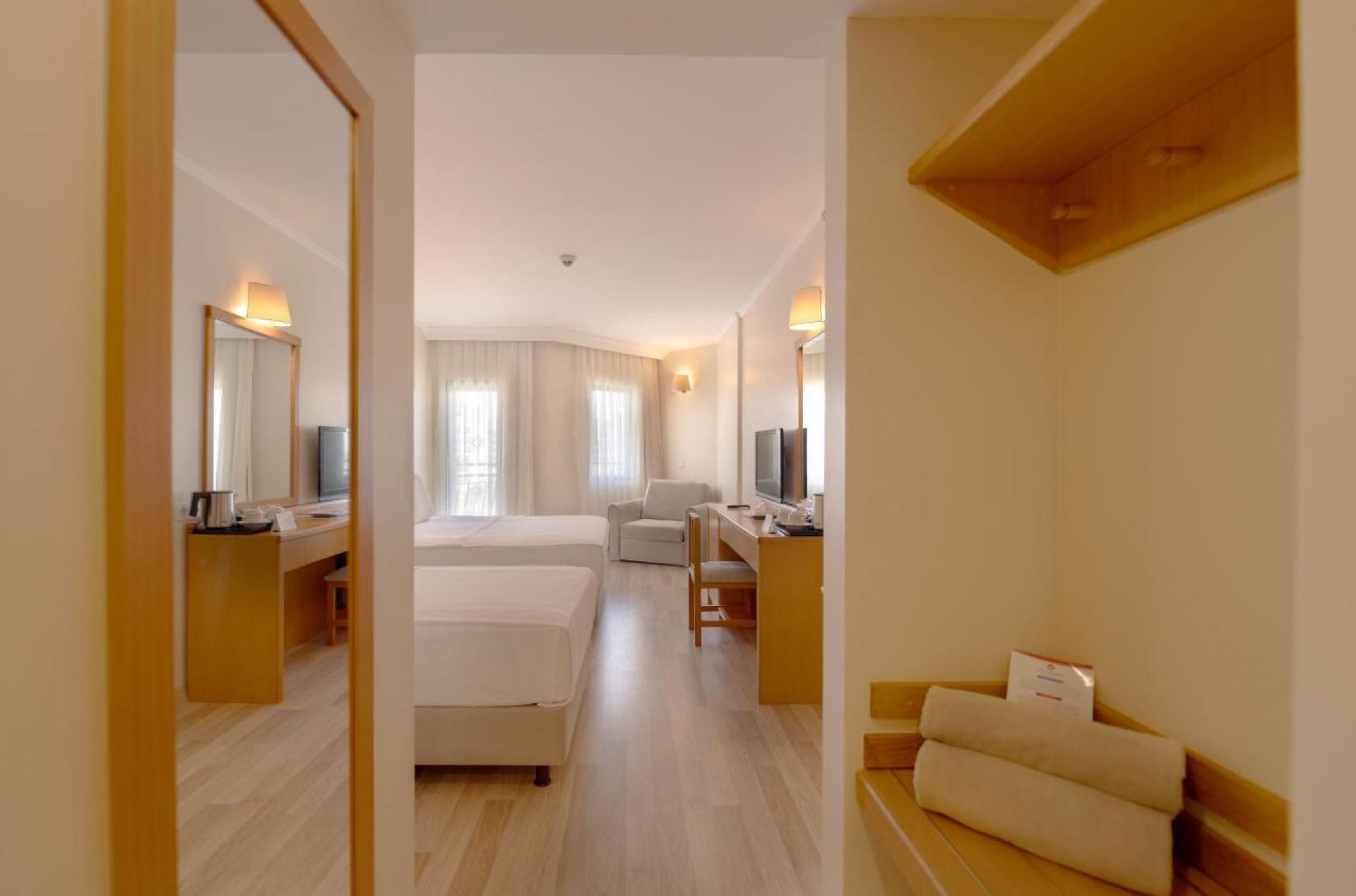 Всички стаи са оборудвани с климатик, телевизор, телефон, баня с душ, сешоар, козметичен сет за баня, сет за чай/кафе, минибар (безплатен), сейф (безплатен).