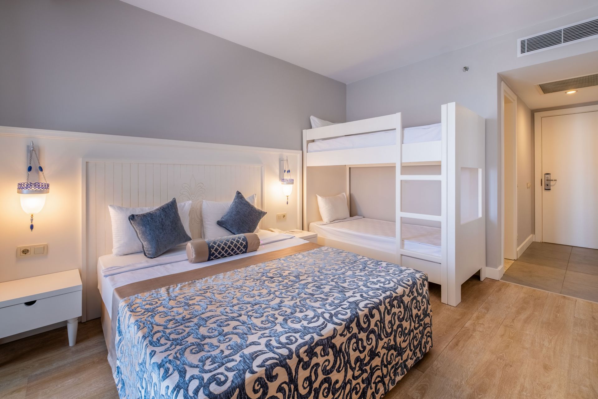 Хотелът разполага с общо 300 стаи, всички оборудвани с климатик, телевизор, телефон, баня с душ/вана, сешоар, минибар, сейф (платен). Почистване на стаите - всеки ден, смяна на спалното бельо и кърпите – 2 пъти в седмицата.