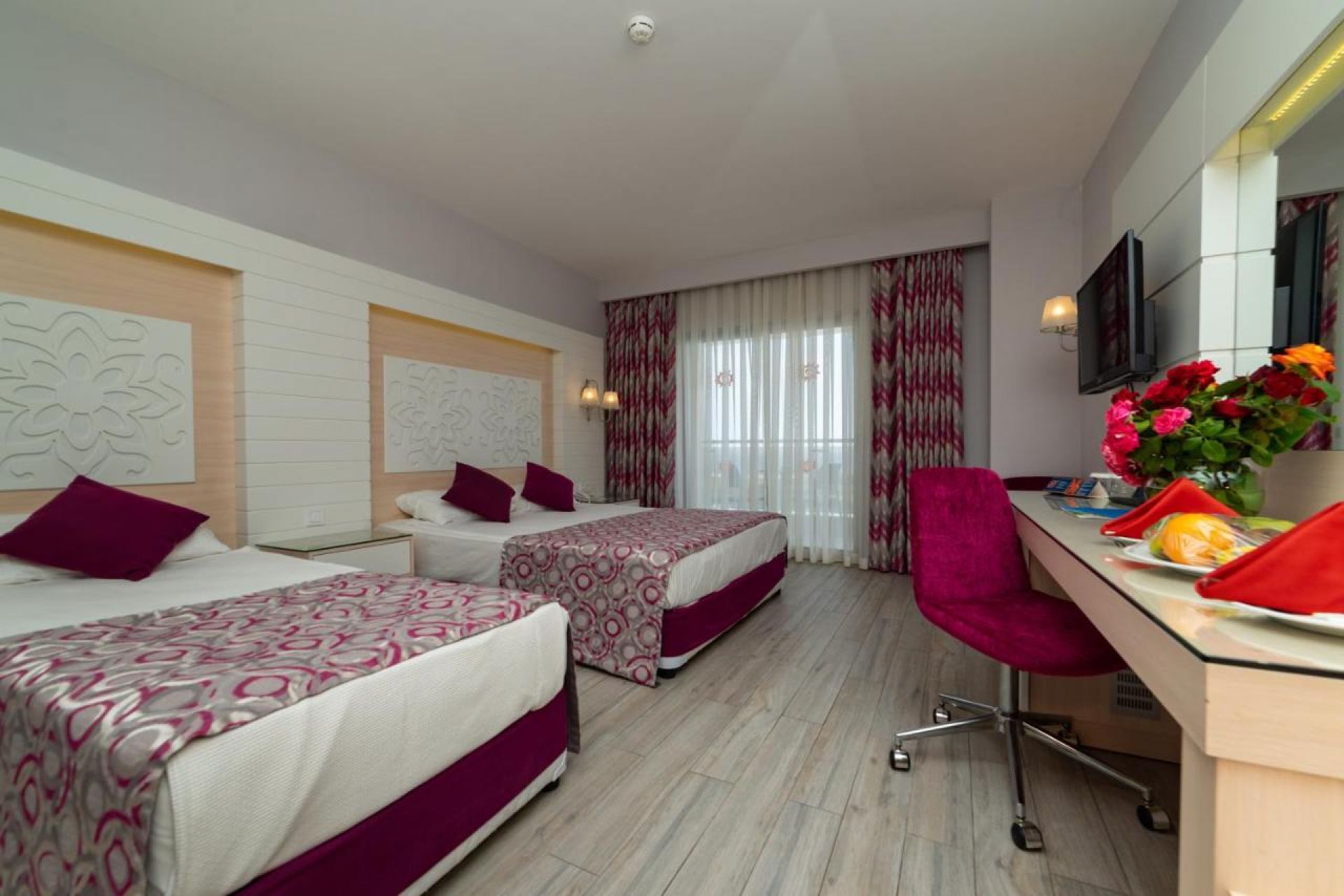 Хотелът разполага с общо 590 стаи, всички от които са оборудвани с климатик, телевизор, телефон, баня с душ/вана, сешоар, минибар, сейф (платен). Почистване на стаите - всеки ден, смяна на спалното бельо и кърпите – 2 пъти в седмицата.