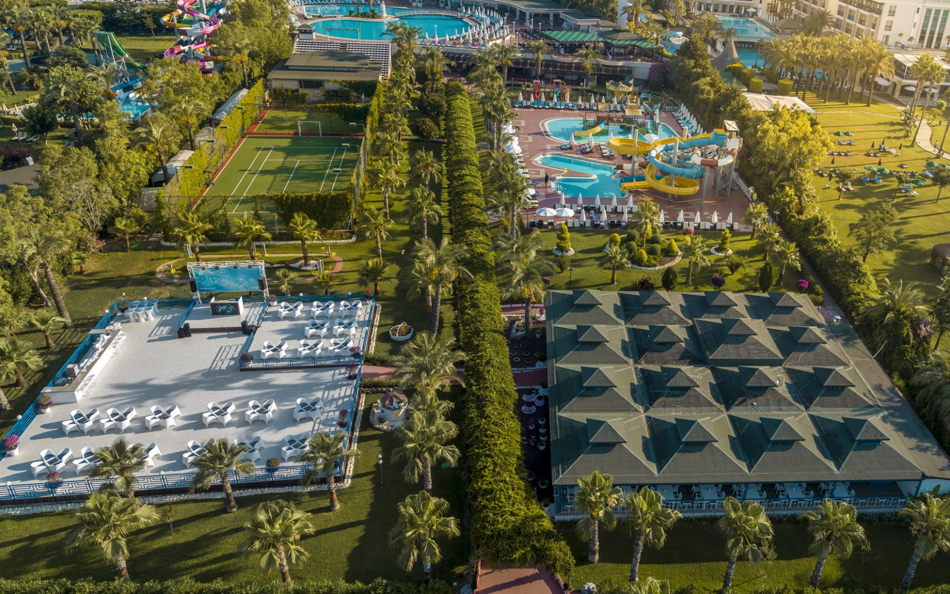 Основен ресторант, гардън бистро, снек бар, гюзлеме корнър, диетично меню, 3 ресторанта a - лa - карт (италиански, турски, рибен – срещу заплащане), сладкарница, 10 бара, дискотека, 6 басейна (открити и закрити), 5 водни пързалки, мини зоопарк, СПА център, фитнес, тенис корт, конферентни зали.