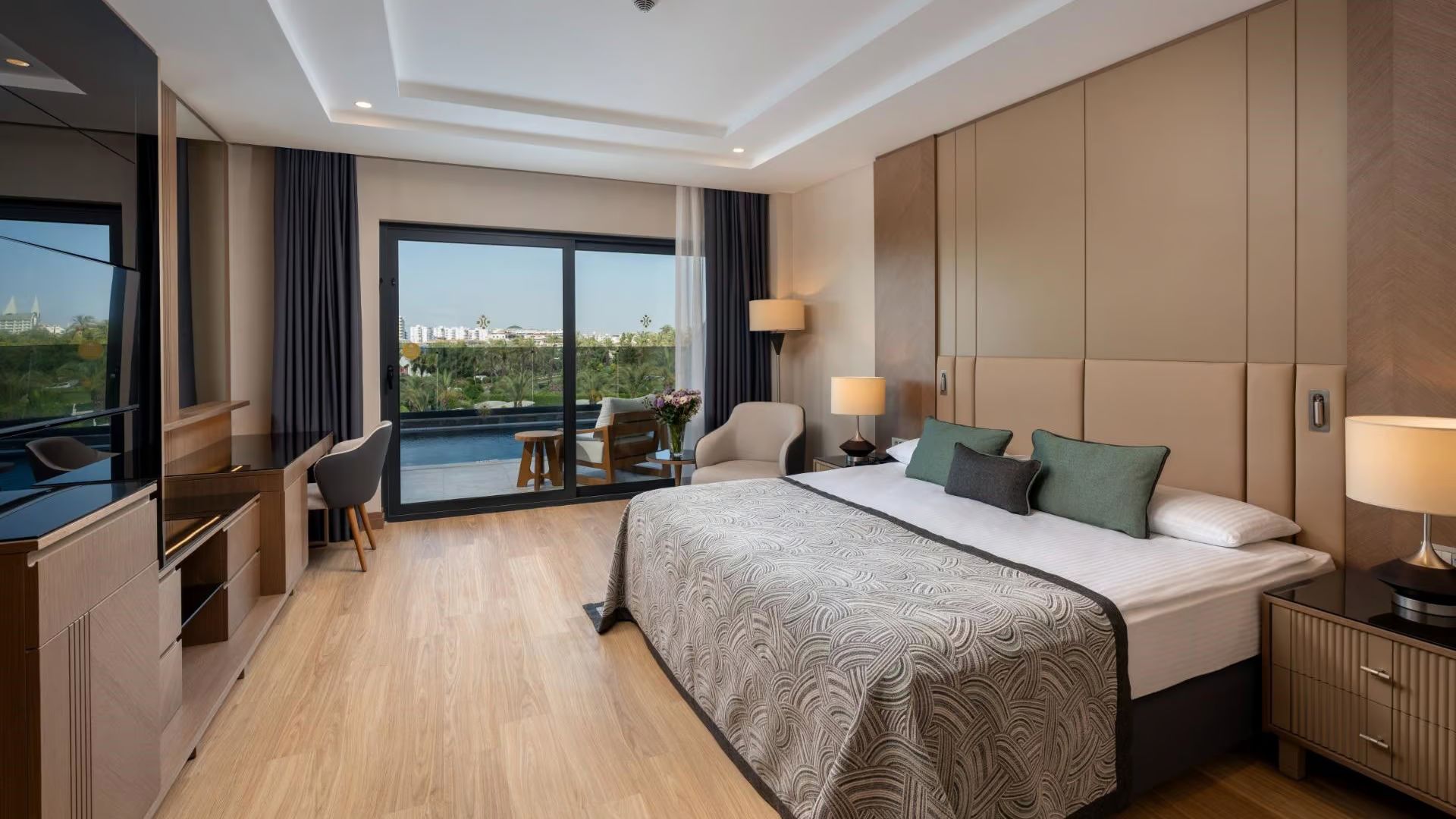 Хотелът разполага с общо 696 стаи, от които 425 стандартни стаи и 122 семейни стаи. Всички стаи са оборудвани с климатик, сателитна телевизия, телефон, баня с вана, сешоар, минибар (вода и безалкохолни напитки), електронен сейф (безплатно), балкон, WI-FI(безплатно). Почистване на стаите и смяна на кърпите – всеки ден, смяна на бельото – веднъж на 2 дни.