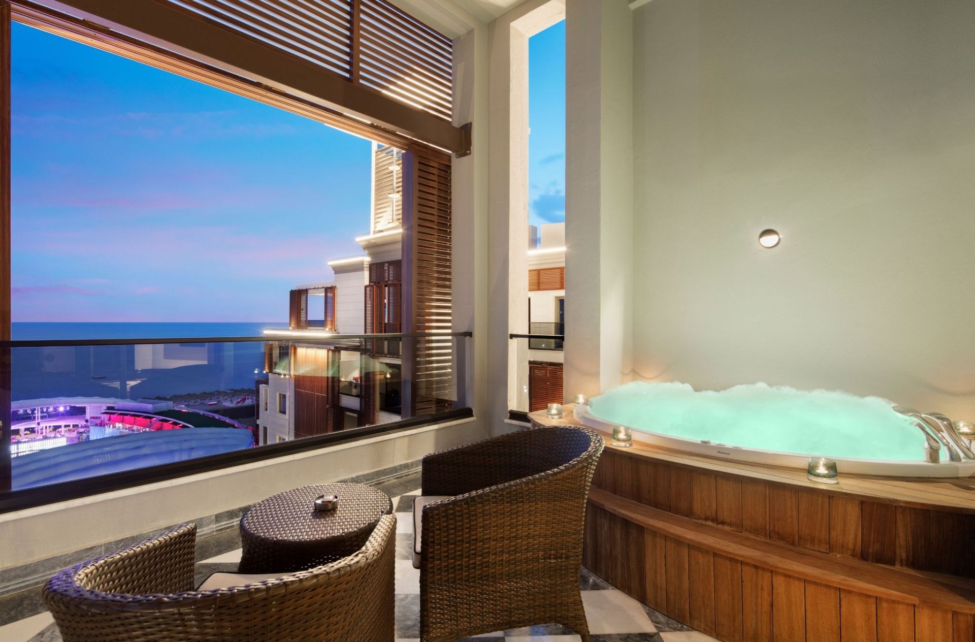 204 Luxury room (стаи с френски балкон - 4 от които за инвалиди – 45-62 м2), 55 Deluxe room (70-75 м2), 36 Superior room (с джакузи на балкона - 124 м2), 100 Family room (2 спални, 1 баня 37-43 м2), 8 Suite room (1 спалня, хол, 1 баня - 124 м2), 10 Premium Suite room (1 спалня, хол, 1 баня, джакузи на балкона - 160 м2), 4 Executive Residence Room (2 спални, хол, 1 баня - 186 м2), 2 King Residence Room (2 спални, хол с кът за хранене, 2 бани - 450 м2), 1 Presidential Residence Room (2 спални, хол с кът за хранене, 2 бани - 500 м2).
