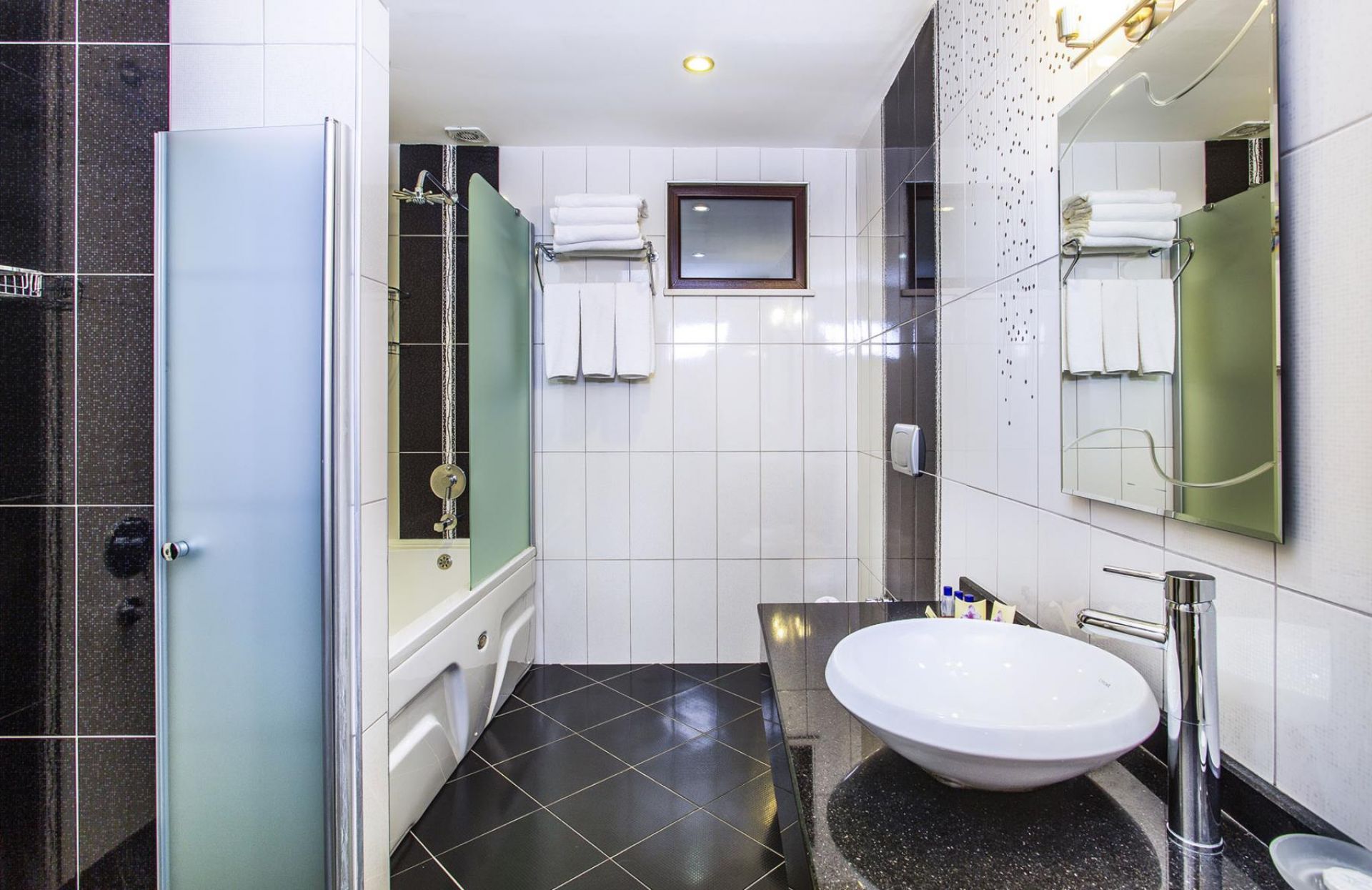 Всички стаи са оборудвани с климатик, телевизор, телефон, баня с душ, сешоар, минибар (платен), сейф (платен), балкон.