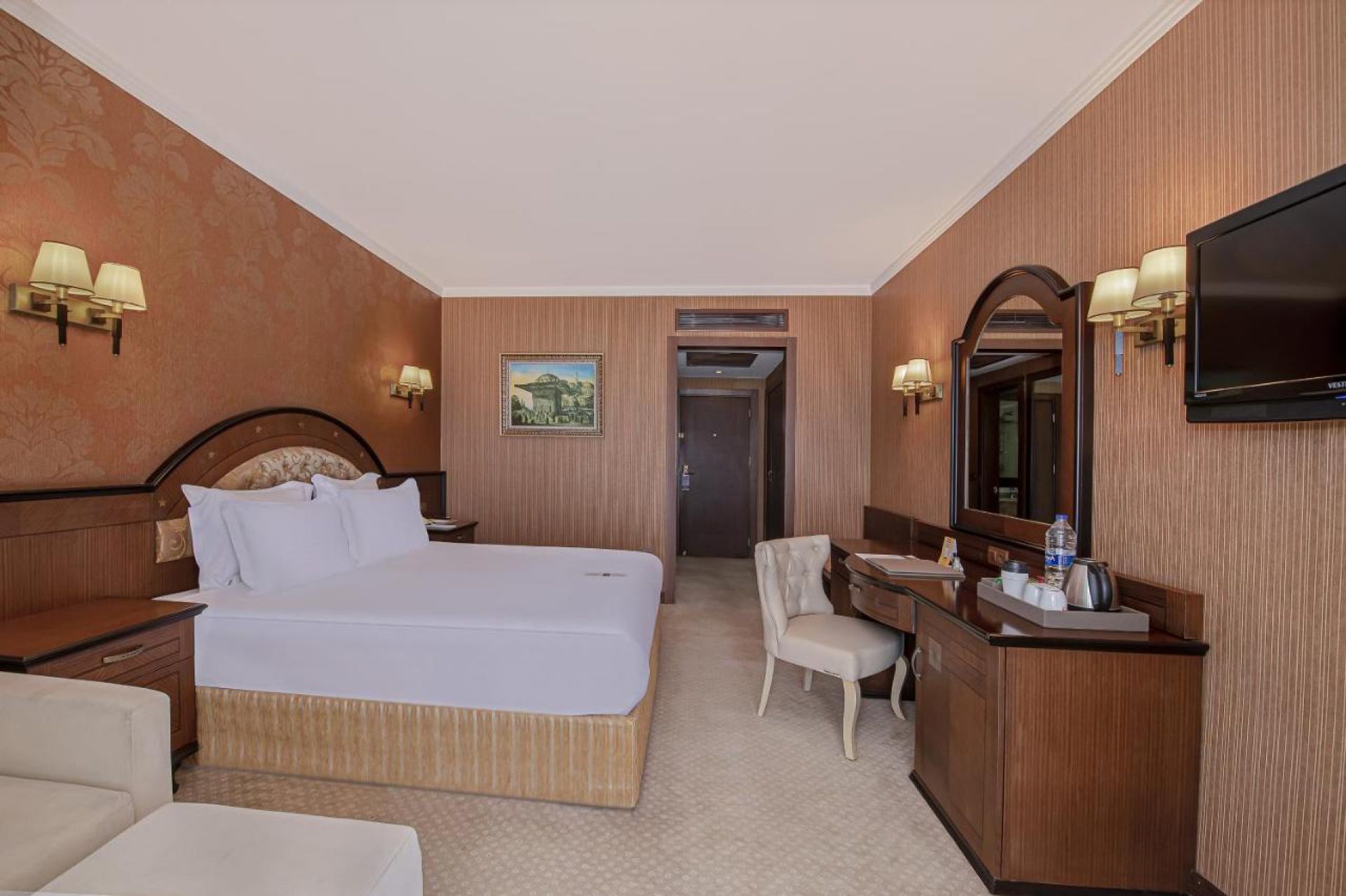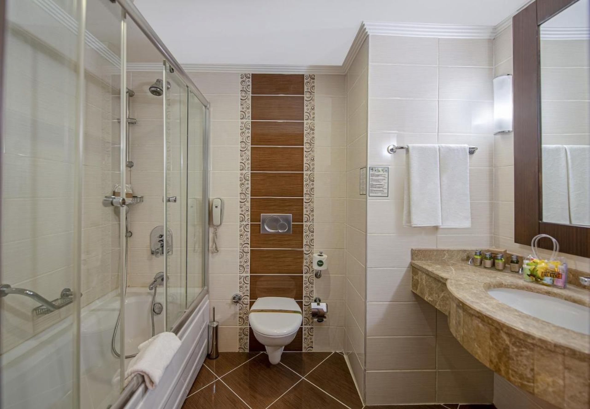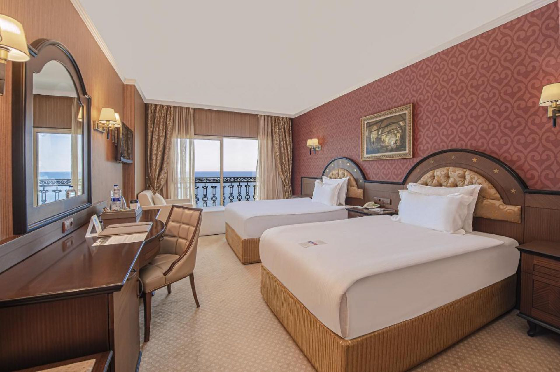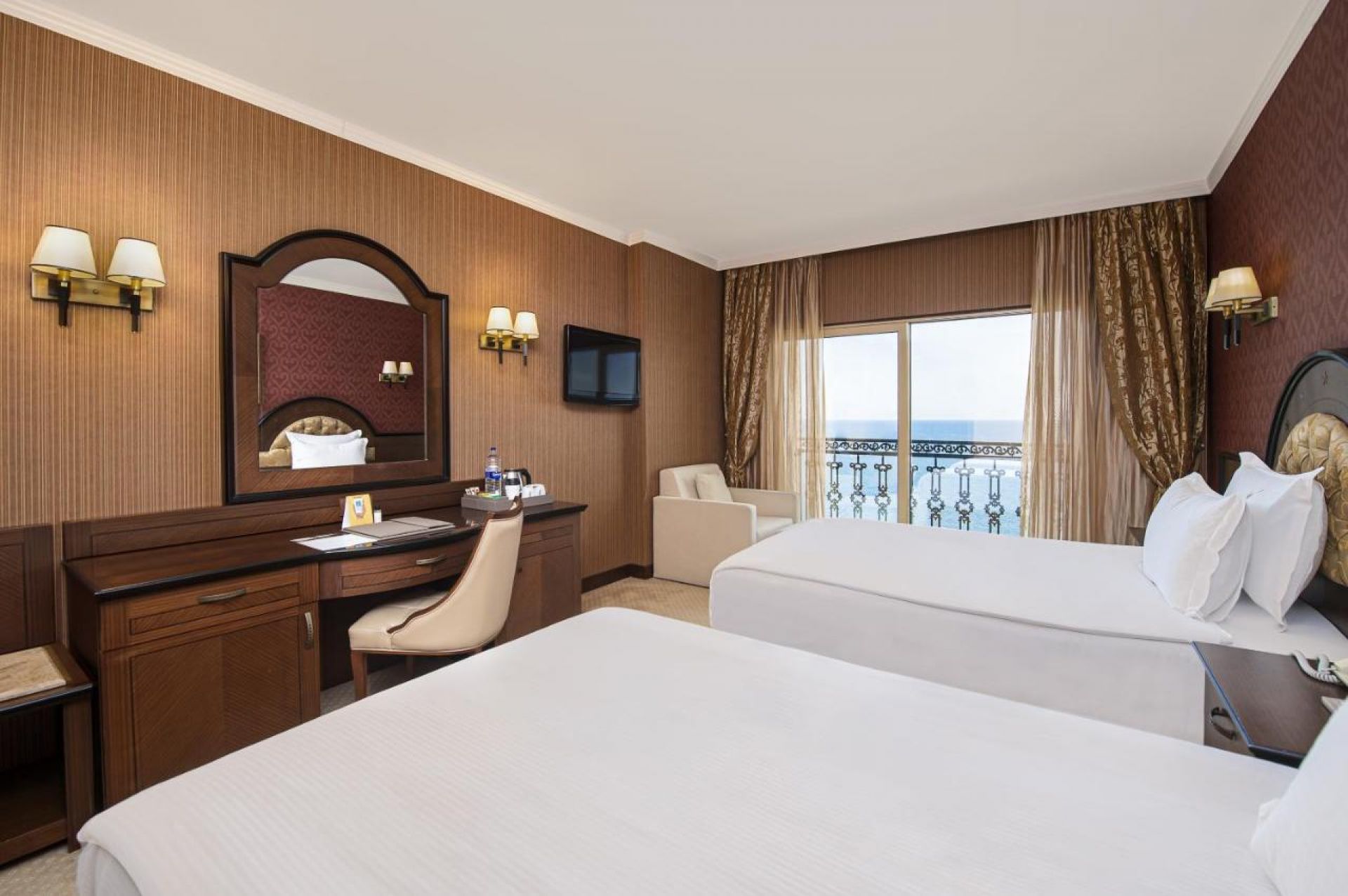 Хотела разполага общо с 334 стаи. Всяка стая е оборудвана с бяня, тоалетна, вана, телевизор, сейф (беплатно), халати и чехли за баня, сешоар, комплет с чай и кафе, телефон, безплатен WIFI, минибар. Почистване на стаите- всеки ден. Смяна на чаршафи и спално бельо- през ден.