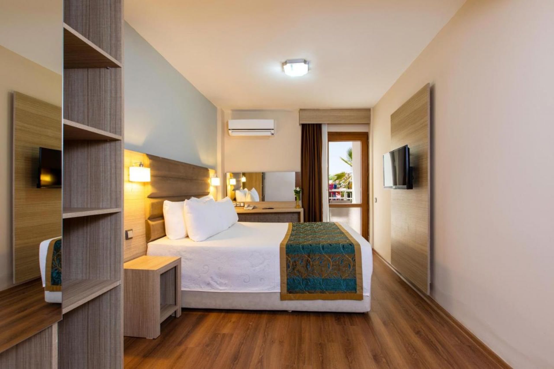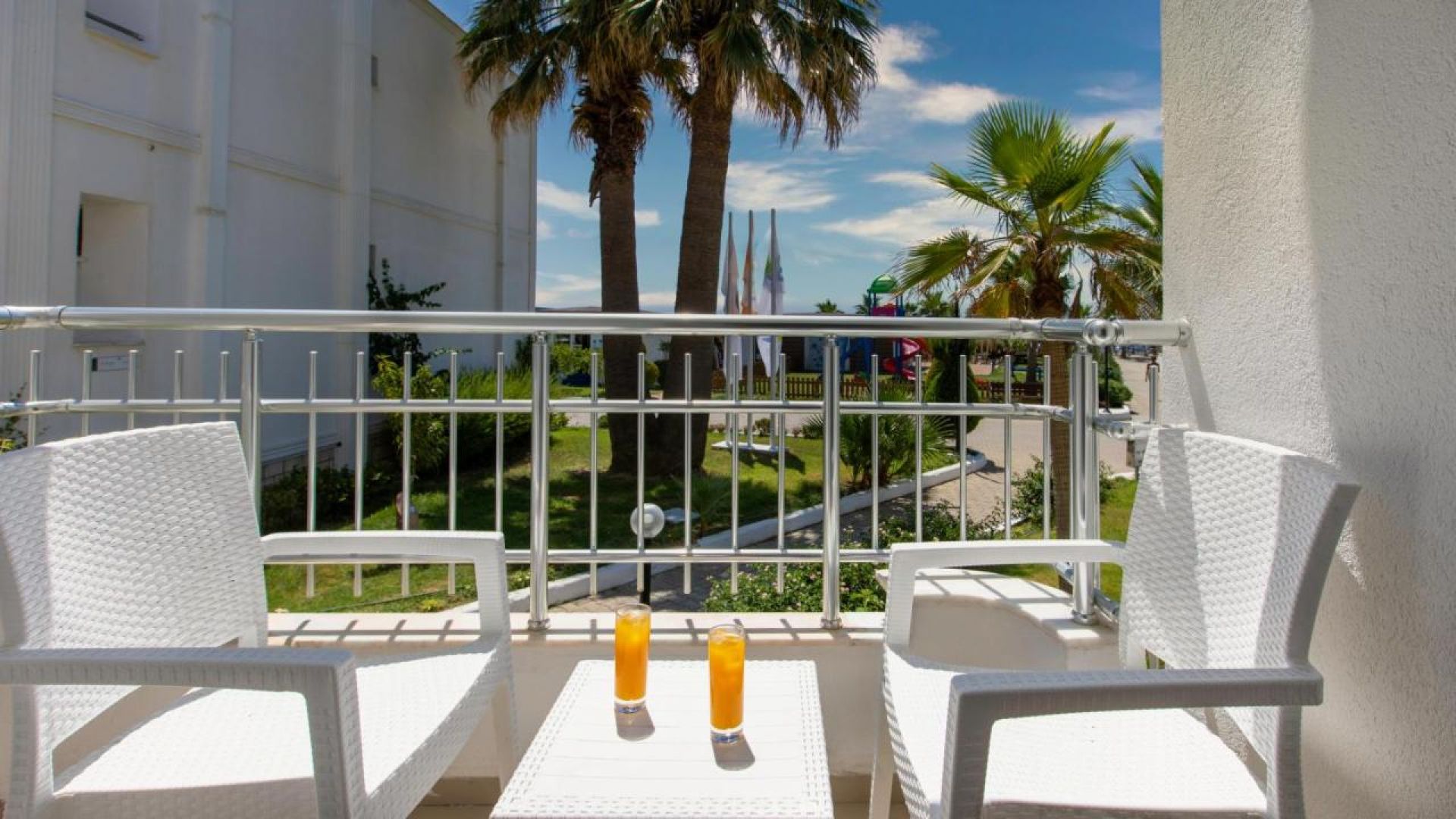 Хотелът разполага със 176 стаи, от които 88 стандартни стаи (спалня и диван, 22 кв.м) и 88 супериор стаи с изглед градина (22 кв.м) в 2 двуетажни сгради. Всички стаи са оборудвани с климатик, телевизор, телефон, баня с душ/вана, сешоар, мини бар, сейф, балкон или тераса. Почистване на стаите - всеки ден, смяна на спалното бельо и кърпите 2 пъти седмично.