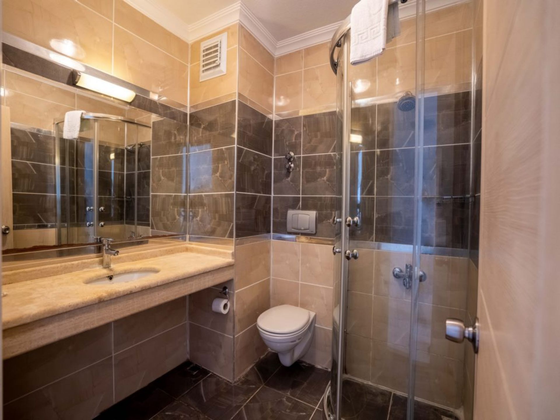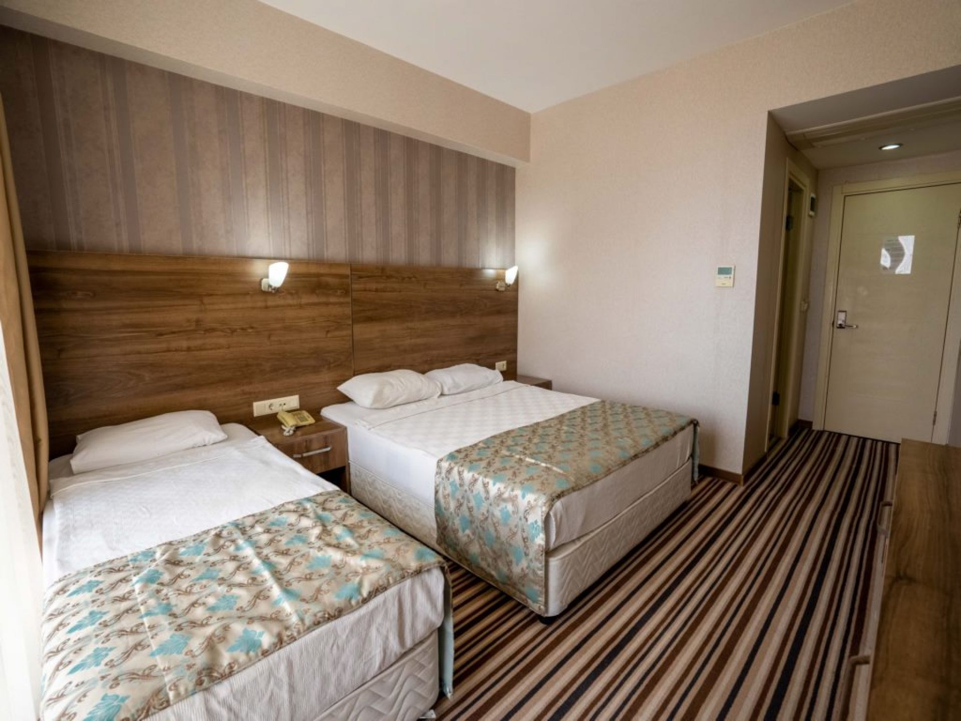 Хотелът разполага с 127 стаи/спалня и единично легло/. Всички стаи са оборудвани с климатик, телевизор, телефон, баня с душ или вана, сешоар, мини бар, сейф, балкон или тераса. Почистване на стаите - всеки ден, смяна на спалното бельо и кърпите - 2 пъти в седмицата.