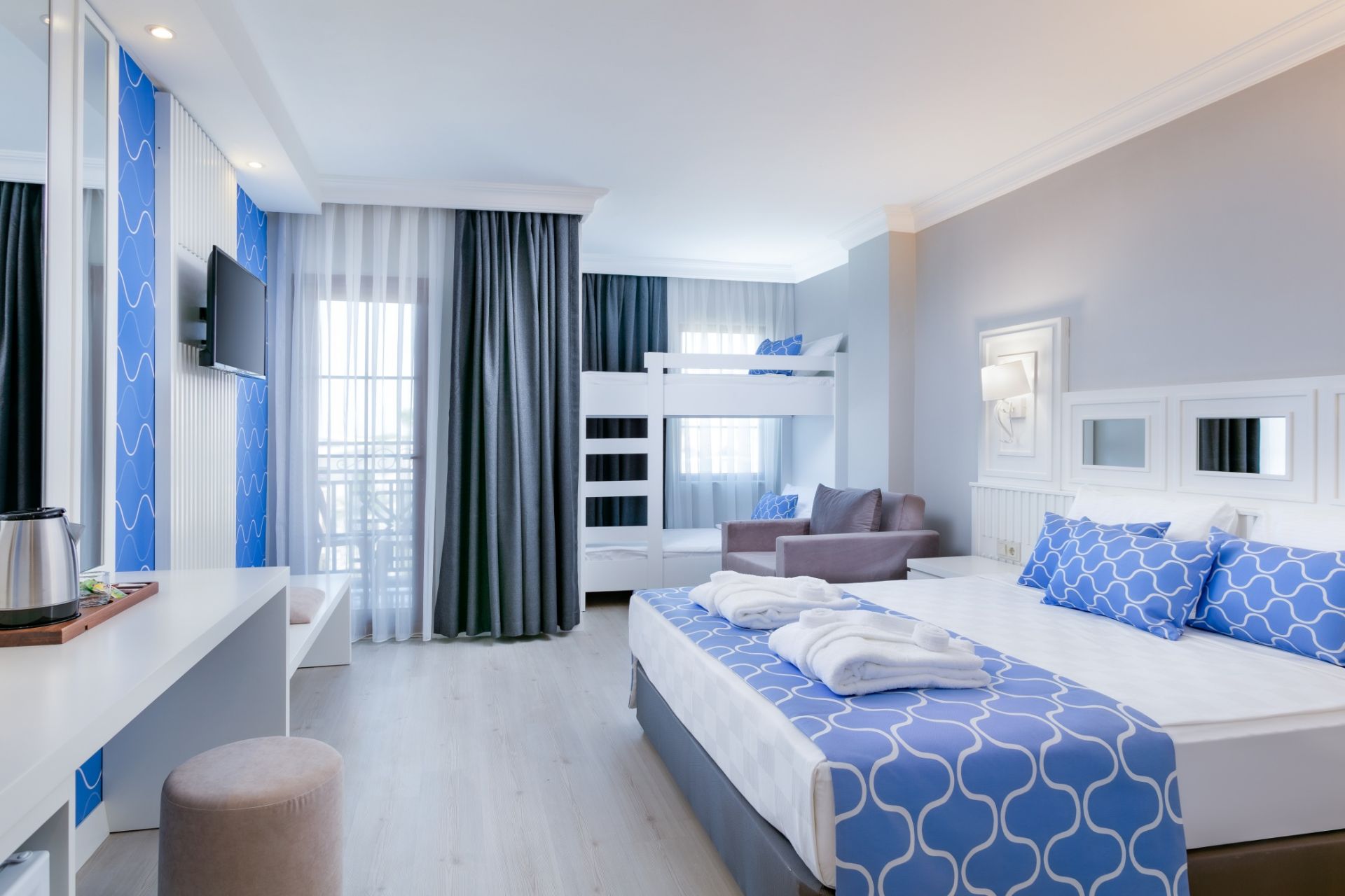 - Стаи тип CHILD FRIENDLY са с по-ниска цена за настаняване на 2-ма възрастни и 2 деца. Те са с по-малък размер от стандартните стаи, с крайно местоположение на територията на хотела, на приземен етаж, без балкон или тераса, с малка баня и различно обзавеждане.