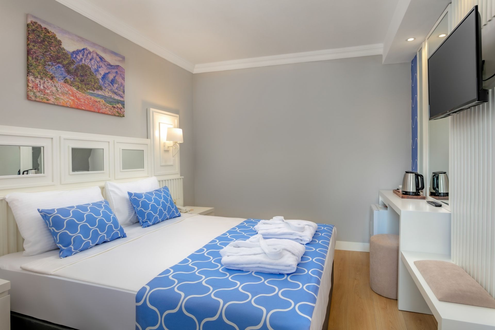 - Стаи тип PROMO и ECONOMY са с по-ниска цена. Те са с по-малък размер от стандартните стаи, с крайно местоположение на територията на хотела, на приземен етаж, без балкон или тераса, с малка баня и различно обзавеждане.