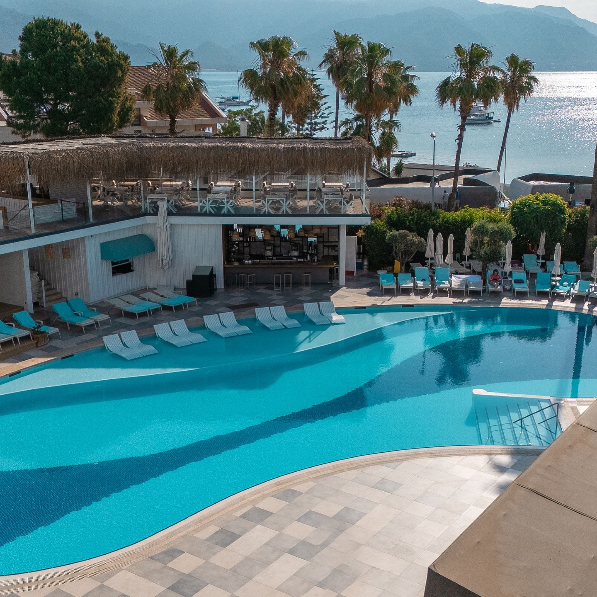 Намира се на 90 км от летище Даламан, на 120 км от летище Милас/Бодрум, на 3 км от центъра на Мармарис, на 10 м от морския бряг.