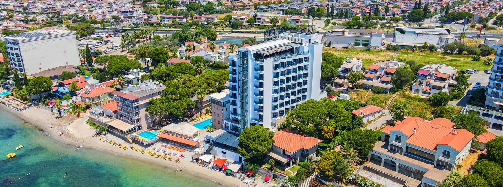 Луксозният хотел се намира на 80 км от летище Измир, на 125 км от летище Милас, на 5 км от центъра на Кушадасъ, на брега на морето. Изцяло реновиран през 2021 г.