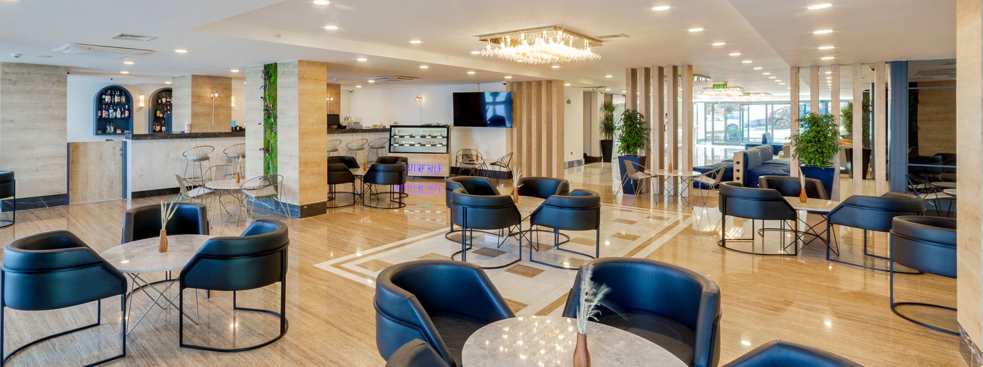 Основен ресторант, снек ресторант, 2 бара, закрит отопляем басейн с детска секция, СПА център, магазин.