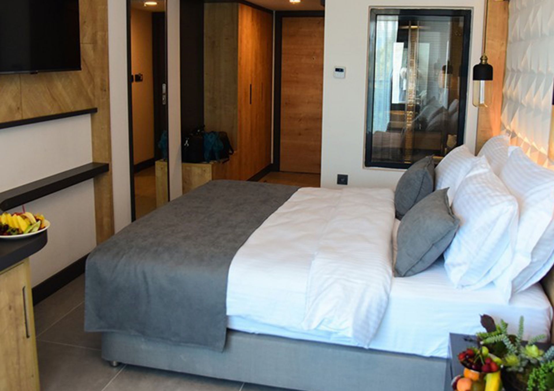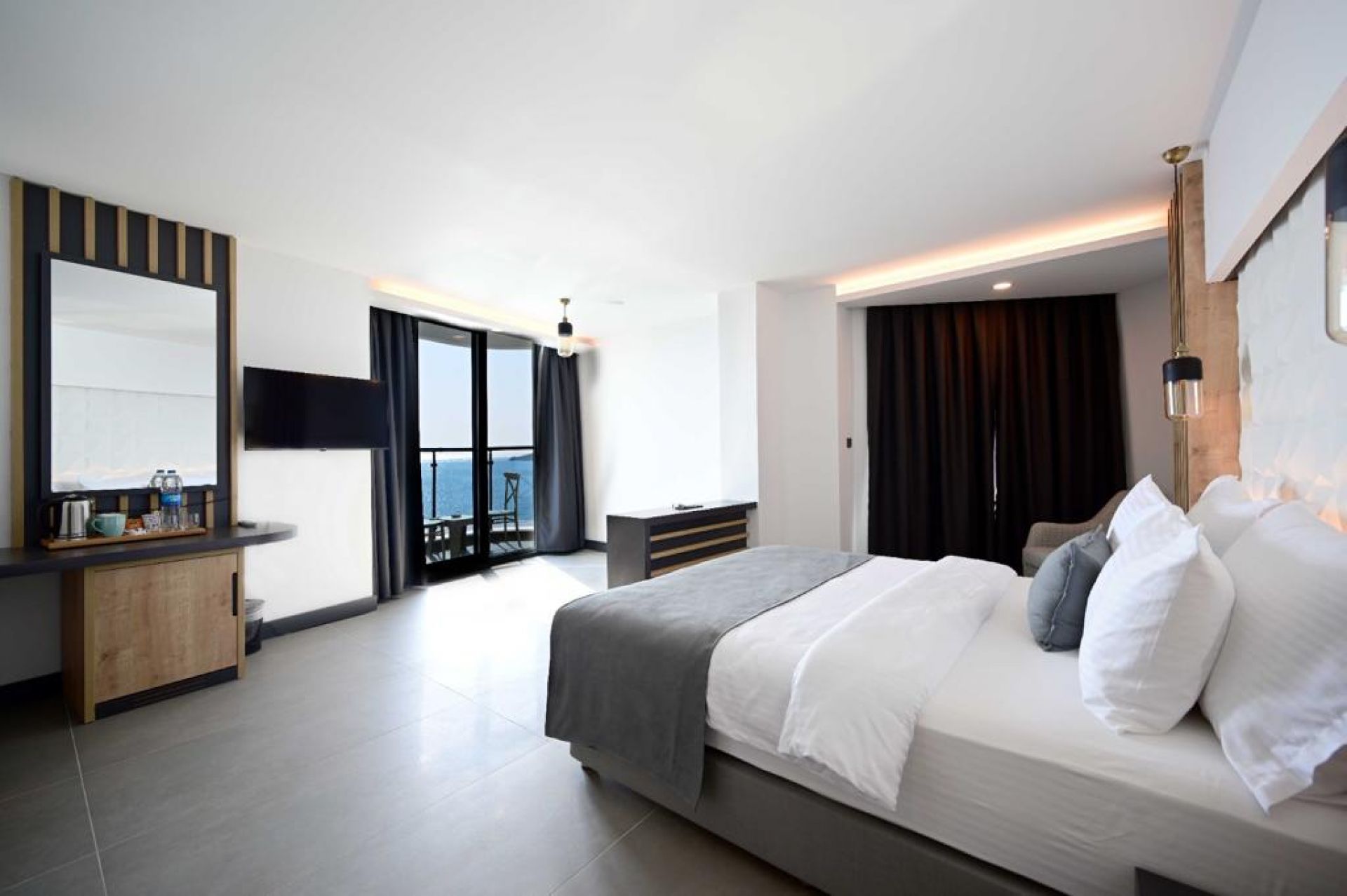 Хотелът разполага с 111 стаи с модерен дизайн, от които 91 deluxe room (22 кв.м, с изглед море), 6 junior suite (30кв.м), 6 corner room (24 кв.м), 1 King Suit (1 спалня, 1 хол, 35 кв.м), 7 promo room (22 кв.м, без изглед море), всички оборудвани с климатик, телевизор, сешоар, телефон, баня с душ / вана, сет за чай / кафе, мини бар, сейф, Wi-Fi, балкон или тераса. Почистване на стаите - всеки ден.