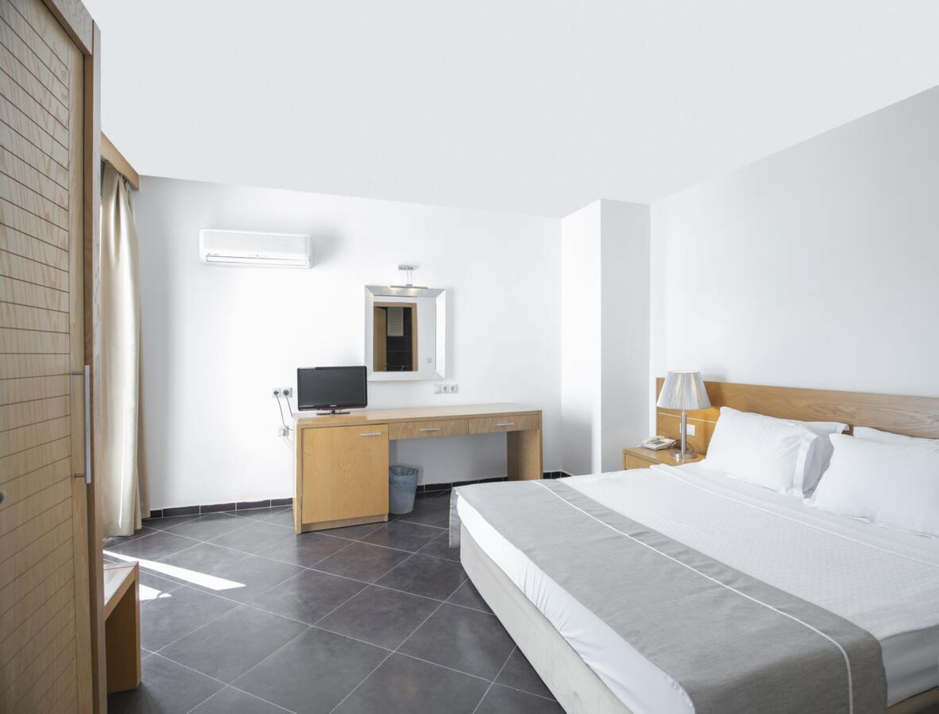 Стаи Club Room Land View (спалня, баня, изглед суша,на 2-та сграда - 22 м²), Club Room Sea View (спалня, баня, изглед море, на 2-та сграда - 22 м²), Superior Room Sea View (1 спалня, хол, 1 баня, на 2-та сграда - 91 м²), Deluxe Room Garden View (спалня, баня, изглед суша, в основната сграда - 25м²), Deluxe Room Sea View (спалня, баня, изглед море, в основната сграда - 25м²), Deluxe Suite (спалня, хол, баня - 56 м²).